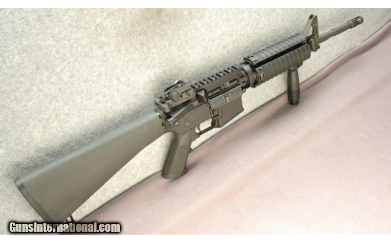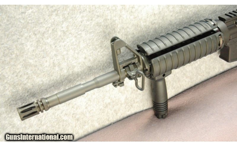Description: SOLD Caliber Info: 5.56 NATO Metal Condition: Excellent, Light Wear and Handling Marks Bore Condition: Bright Barrels: 14.5" M4 Profile Barrel with Pinned Flash Hider Triggers: Standard Military Type Trigger Stock: A2 Style Fixed Stock Fore End: Aluminum with Rails for Accessory Mounting, Vertical Foregrip Installed Weight: 7 Lbs 8 ozs Sights: Flip Up Adjustable Iron Sights, and Reciever Rail for Scope Mounting Extras: With one mag, no box Item Location: La Vista, NE |