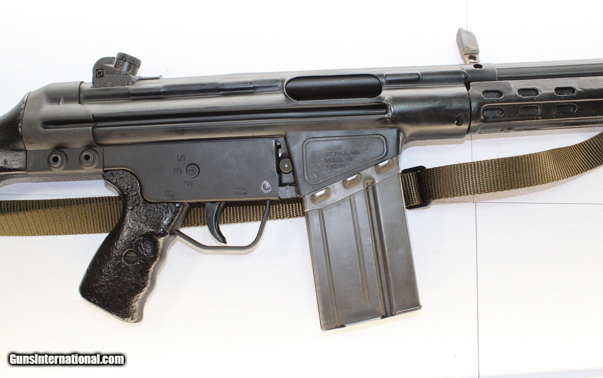 Description: Guns Listing ID: 1126879 SER #G005801, 7.62x51NATO 19 1/2‚‚ barrel with a good bore. Hesse built this quality G3 clone using a Hesse receiver and military surplus parts. The metal surfaces retain about 95% original blue, black enamel and Parkerized finishes with a few scattered handling marks, some light high edge silvering, a small area of light oxidation spots of flaking enamel on the trigger toning to brown. The pebble-textured polymer wide handguard has a slight loose area, pistolgrip with right hand thumb rest and buttstock rate about good. The rifle features a muzzle brake, military-style diopter sights and an good condition. One German surplus steel G3 20-round magazine is included. This rifle appears to have seen only light use and will likely be an excellent shooter. SOLD Manufacturer: HESSE ARMS Model: H91 Caliber Info: 7.62X51MM NATO Condition: Used - Non-Certified Barrels: 19.5 BARREL Finish: BLACK |