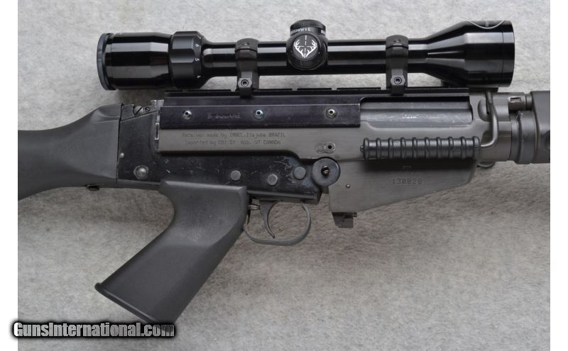 Description: This Imbel Model R1A1 is a tactical semi-auto rifle in .308 Win. Cal. It has a 20.5 inch barrel and a smooth grip black polymer butt and full pistol grip. A three sided black steel forearm. It is outfitted with a Bushnell 3x9 Scope and has a front blade iron sight. In overall very good condition it comes as is with one magazine. SOLD Caliber Info: .308 Win. Chambers: Detachable magazine. Metal Condition: Very good. Has some surface marks. Bore Condition: Excellent. Barrels: 20.5 inches. Stock: Smooth black polymer buttstock and full pistol grip. Stock Dimensions: LOP 14 3/8 inches. Fore End: Vented and grooved 3 sided black steel. Butt Pad: Smooth black rubber pad. Weight: 10 lbs. 12 oz. Sights: Blade front with protective sides. Bushnell High Contrast 3x9 Scope. Item Location: Richfield, WI |