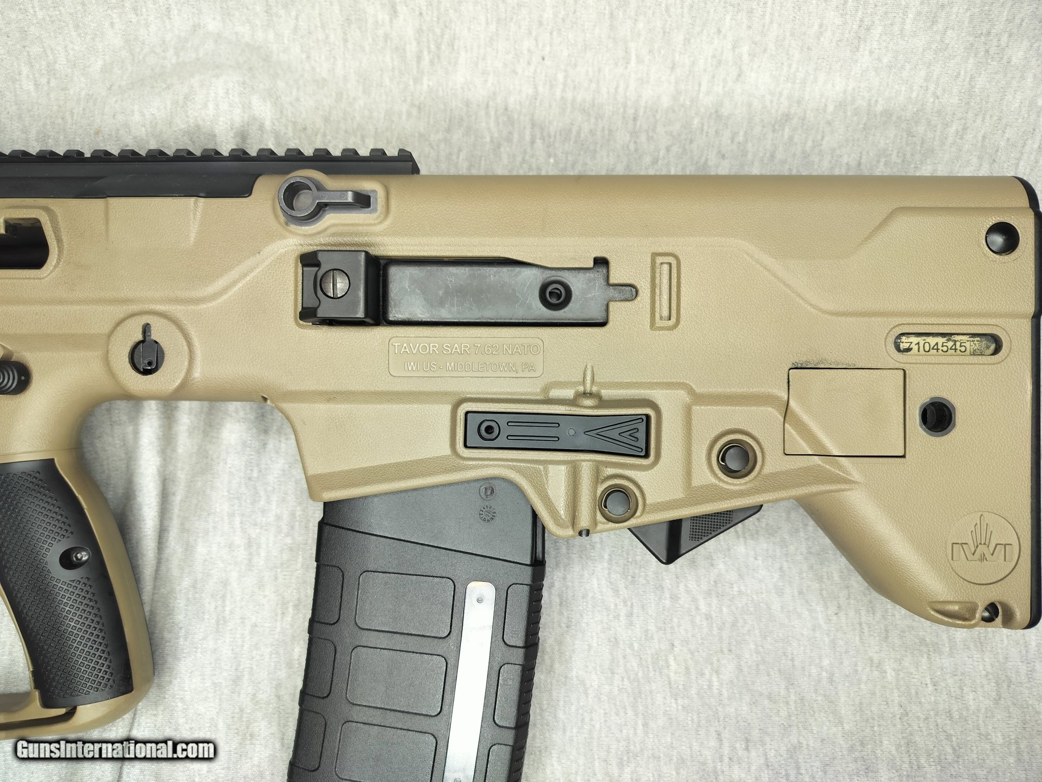 Description: Guns Listing ID: 584062 IWI TAVOR - 7.62X51MM NATO, NO BOX, ONE 20RND MAG Manufacturer: IWI Model: TAVOR Caliber Info: 7.62X51MM NATO Condition: Used - Non-Certified Barrels: 16.5" BARREL Action: SEMI AUTOMATIC Finish: BROWN Weight: 9.3 LBS. Price: $1,749.99 Contact Seller |
