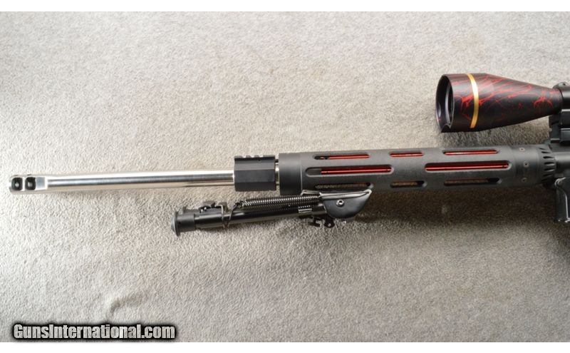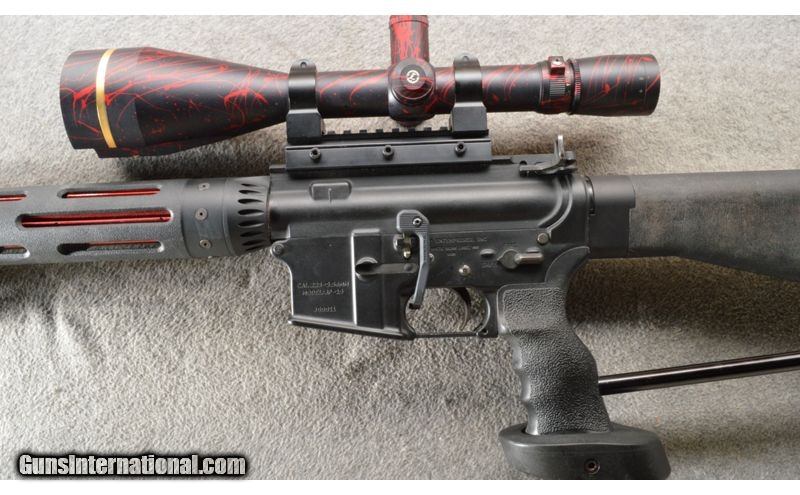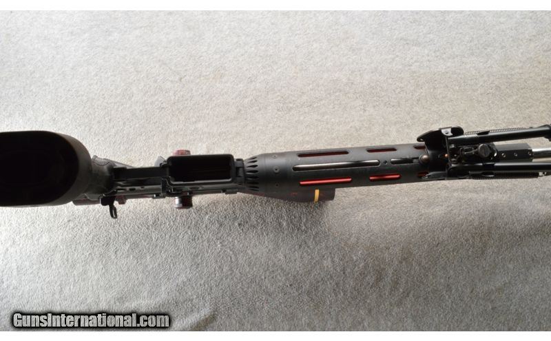 Description: This is a very nice clean and tricked out J.P Enterprises JP-15 in .223 Rem 5.56 Nato. The barrel is a 25.5 inch stainless steel JP Cryogenic heavy with a muzzle break. The barrel is protected and cooled with a Viking Tactical round vented forearm with aluminum internal fins in red. The T handle on the receiver has an extension next to a forward assist button. The chamber hold open has a quick release inside the trigger guard. There is a Bi-pod on the forearm as well. The butt stock is a J.P Enterprises black synthetic with a Palma style pistol grip. This fine rifle is topped with a Leupold VX-L 6.5-20 X 56 rifle scope with side parallax adjustments and target turrets. 5.56x45MM NATO SOLD Chambers: Semi-Auto. Metal Condition: About new. Wood Condition: The stock is like new. Barrels: JP Supermatch cryogenically treated barrel. Thermo-Fit to receiver. Triggers: J.P. fire control single trigger. Stock Dimensions: 14 5/8 inch LOP. Fore End: 25.5 inch stainless steel JP Cryogenic heavy with a muzzle break. Butt Pad: Black synthetic butt plate. Sights: Leupold VX-L 6.5-20 X 56 rifle scope with side parallax adjustments and target turrets and red spiderfinish. Item Location: Owatonna, MN |