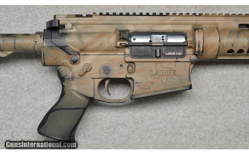 Description: Larue Tactical LT-762 OBR chambered in .308 Winchester. SOLD Caliber Info: .308 Winchester Metal Condition: Very good with light marks and wear in paint Wood Condition: Excellent Bore Condition: Bright Barrels: 16" and flash hider Triggers: Geissele SSA Stock: Magpul CTR Stock Dimensions: Adjustable length of pull Fore End: Larue Handguard Butt Pad: Rubber butt pad Weight: 9lbs 14ozs Sights: Flat top picatinny rail Item Location: Fort Worth, TX |