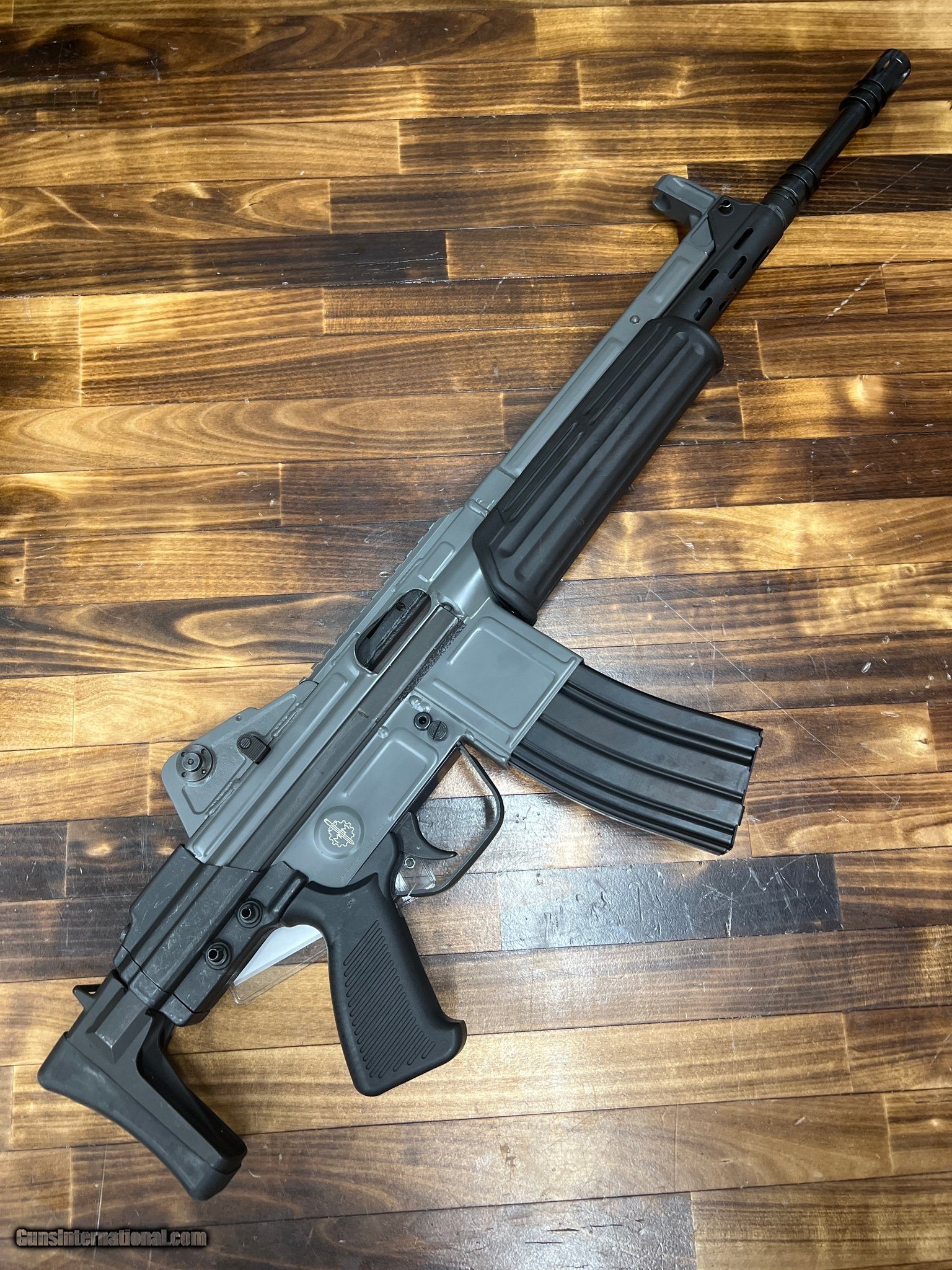 Description: Guns Listing ID: 1390419 This listing is for a Spanish Marcolmar Cetme model L that comes equipped with a paratrooper stock! This is the only Marcolmar Cetme rifle in existence that has a Paratrooper stock for sale in the United States. This firearm is in brand new condition. This is in gray and black. This rifle comes with the original Marcolmar zipper carry bag and all the stuff that it’s supposed to come with. SOLD Manufacturer: MARCOLMAR FIREARMS Model: CETME L PARATROOPER STOCK Caliber Info: 5.56X45MM NATO Condition: Used - Non-Certified Barrels: 16 BARREL Finish: GREY & BLACK |