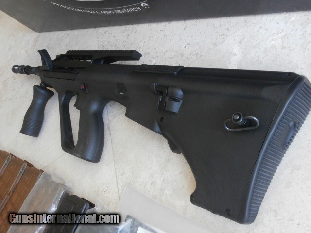 Description: Like New Condition in the Box, Original Owner. Microtech Small Arms Research (MSAR) STG-556 Bullpup Gen 4 model. Made in the USA. Production ceased in 2015. Chambered in 5.56 NATO. Bore is bright and sharp in Like New Condition. I fired approximately 20 rounds when it was first purchased. The Gen4 STG-556 works with AUG magazines. Receiver made from 7075 T6 investment cast aircraft aluminum. Moly coated over Mil-Spec hard coat anodized finish. Barrel is fluted, made of 4150 ordnance steel, and chrome lined. Bolt locks open on an empty magazine. Hand adjustable gas system. Fold down forward grip. The STG-556 is accurate and reliable. Comes with 8 MSAR proprietary magazines, Owner's manual and papers. I will ship inside an outer box to protect the original MSAR box. I will accept cash, cashier's check, money order, or personal check. Manufacturer: Microtech Model: STG-556 Serial Number: 600-POO8049 Barrel Length: 16 Bore Info: Chrome Lined Condition: Like New Metal Condition: Like New Bore Condition: Like New Barrel Type: 4150 Steel, fluted Triggers: 2 Stage Finish: Moly coated over Mil-Spec hard coat anodized Weight: 7.2lbs Price: $1,995.00 Shipping: $50.00 Contact Seller |