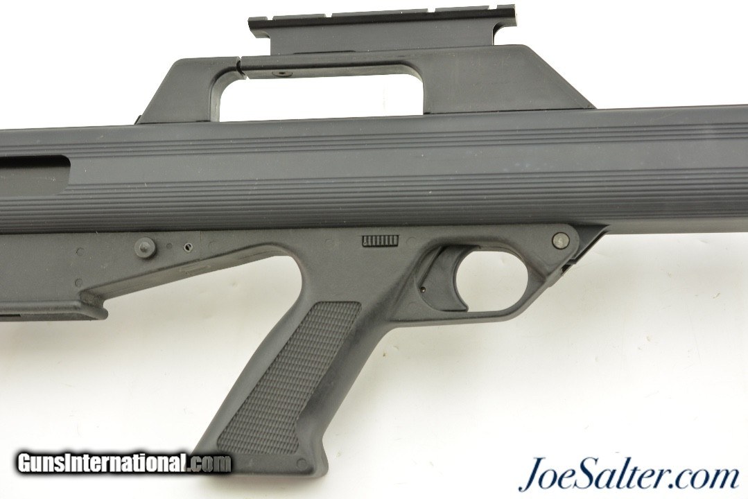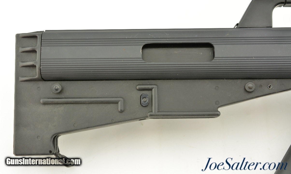 Description: Serial #P00950, 5.56 NATO, 23.5 inch barrel with an excellent bore. This is the Model 17S bullpup rifle manufactured starting in 1993 by Bushmaster Fire Arms in Windham, ME prior to the 1994 assault weapons ban and features a threaded barrel with flash suppressor. The rifle has a unique rear charging handle with aluminum/polymer construction, has AR-18-style operating system and is magazine compatible with standard AR-15 magazines. In excellent condition the metal surfaces show only a few minor handling marks. It comes with the manual. No magazine is included, but it takes standard AR mags.. FFL Price: $895.00 Contact Seller |