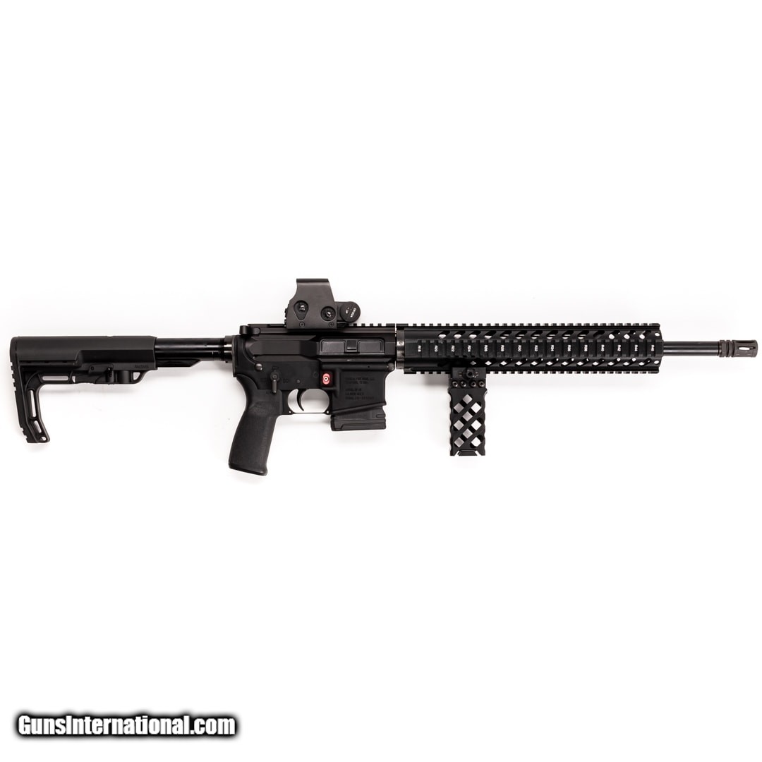 Description: Guns Listing ID: 236374 The Radical Firearms RF-15 is a gas-operated, semi-automatic fully Mil-Spec rifle. Chambered in 5.56 NATO with M4 feed ramps, it is built with a law enforcement grade forged upper and lower and a 16" chromoly vanadium steel threaded barrel. Other features include a 15" free-floated round rail, M4 collapsible stock, and over-molded grip. The barrel and bolt carrier groups of the RF-15 are also Melonite treated for added strength and durability. This model has a knockoff EOTech type optic and a non-detachable 10-round magazine. SOLD Manufacturer: RADICAL FIREARMS Model: RF-15 Caliber Info: 5.56 NATO Condition: Used - Certified Barrels: 16" barrel Finish: BLACK |