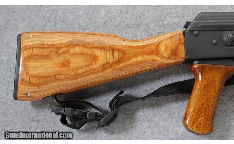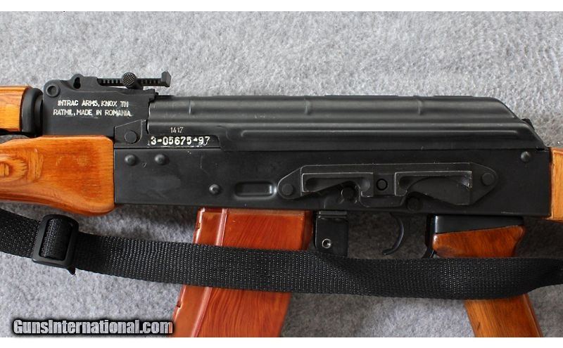 Description: This Romanian built RATMIL MKII 5.45x39mm rifle was imported by Intrac Arms. It is a semi-automatic AK74 variant with a stamped receiver. Manufactured 1997. 5.45 x 39mm SOLD Wood Condition: Very good with a few scratches Bore Condition: Excellent Barrels: 16.5 inch barrel Triggers: Two stage trigger Stock Dimensions: 12 3/4 inch LOP Butt Pad: Black plate Weight: 7 Lbs. 14 Oz. Sights: Sliding tangent rear sight with post front sight Item Location: Lehi, UT |