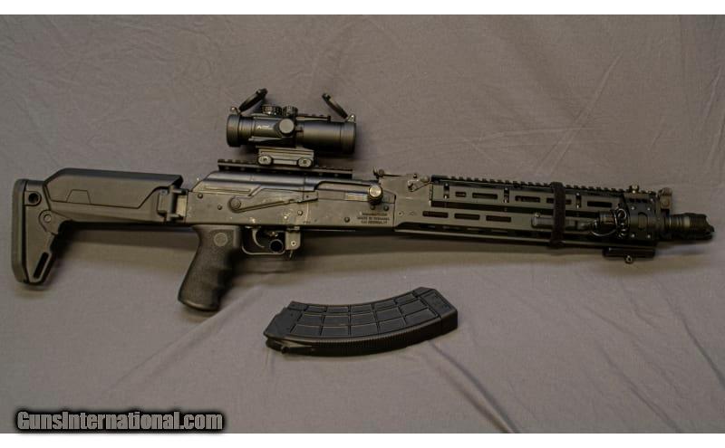 Description: Cugir Wasr-10 in 7.62x39 mm. This is in great condition with a few wear marks from being used. It has a Midwest Industries handrail, Midwest Industries scope mount, Magpul Zhukov folding stock, Hogue rubber grip, extended bolt handle, Primary Arms ACSS scope, Epsilon AK VG6, US Palm magazine, and a flashlight. 7.62X39mm SOLD Barrels: 16 inch Weight: 8 lbs 8 oz Item Location: Charleston, WV |