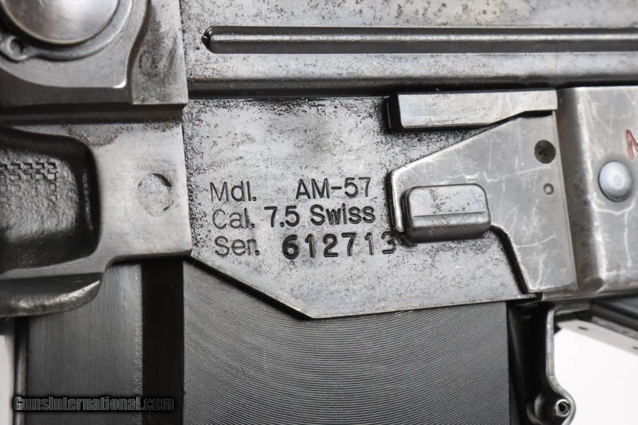 Description: For sale is a scarce Swiss PE-57 semi automatic rifle that was rebuilt on a Honeycreek receiver. The metal has an clean blued finish with old oxidation visible on some of the parts on the receiver. The stock, grip, and forend are in great shape without any cracks. The barrel is a new, manufactured barrel and has a mirror bright bore. The selector moves to all 3 positions but only fires in semi. Comes with an original 20-round magazine, sling, and bayonet. Rifle Caliber: 7.5x55mm Swiss Price: $7,495.00 Contact Seller |