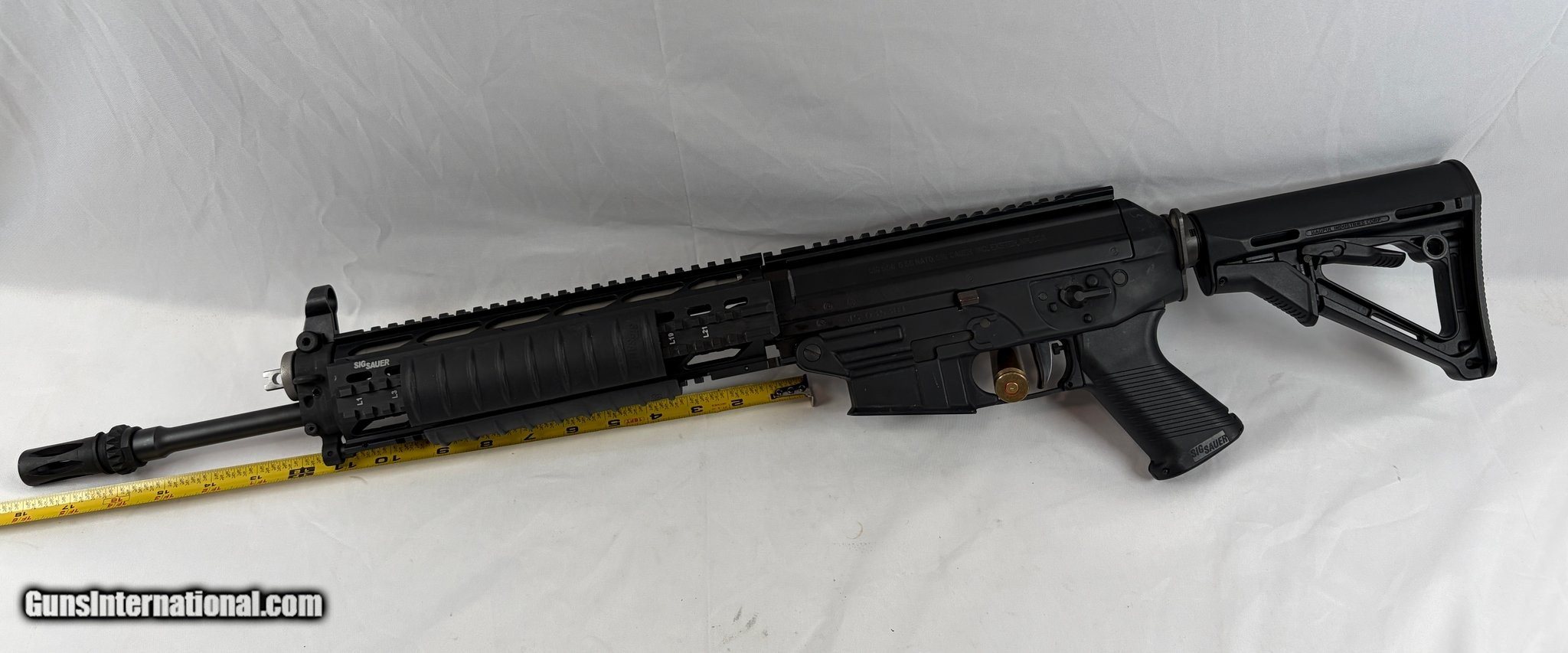 Description: Guns Listing ID: 582868 SIG Sauer SIG 556 – 5.56 NATO Description: Offered here is a SIG Sauer SIG 556 chambered in 5.56×45mm NATO. This rifle pairs proven SIG engineering with rugged, user-friendly ergonomics — a great choice for range work, training, or as a reliable semi-automatic rifle for multiple roles. This example is in very good condition with light handling wear and a clean, serviceable bore. It features a 16\" barrel, SIG’s short-stroke gas piston operating system for reliable, cleaner running, and a flat-top upper with a full-length Picatinny rail for optics and accessories. The rifle has a durable finish and comfortable polymer furniture with an adjustable/folding stock for compact transport and adaptable shooting positions. Controls are intuitive and ambidextrous where applicable, making the SIG 556 easy to run for right- or left-handed shooters. Whether you’re looking for a rugged range rifle or a dependable all-around semi-auto, the SIG 556 delivers durability, smooth operation, and excellent handling. Features: Short-stroke gas piston system for reliable, low-maintenance operation 16\" barrel for a balanced sight radius and handling Flat-top upper with full-length Picatinny rail for optics and accessories Polymer furniture with adjustable/folding stock for versatility and transportability Ambidextrous/ergonomic controls and a robust, serviceable finish Includes: (1) Magazine Manufacturer: SIG SAUER Model: SIG 556 Caliber Info: 5.56X45MM NATO Condition: Used - Non-Certified Barrels: 16" BARREL Action: SEMI AUTOMATIC Price: $1,399.99 Contact Seller |