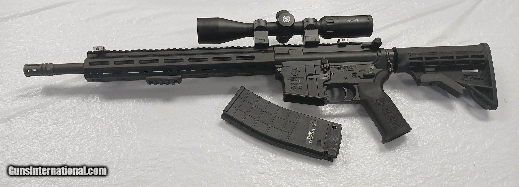 Description: Guns Listing ID: 1332975 In very good condition, comes with a magazine, Hawke scope and a case. Take a look at the pictures for reference! SOLD Manufacturer: TIPPMANN ARMS Model: M4-22 Caliber Info: .22 LR Condition: Used - Non-Certified Barrels: 16 BARREL |