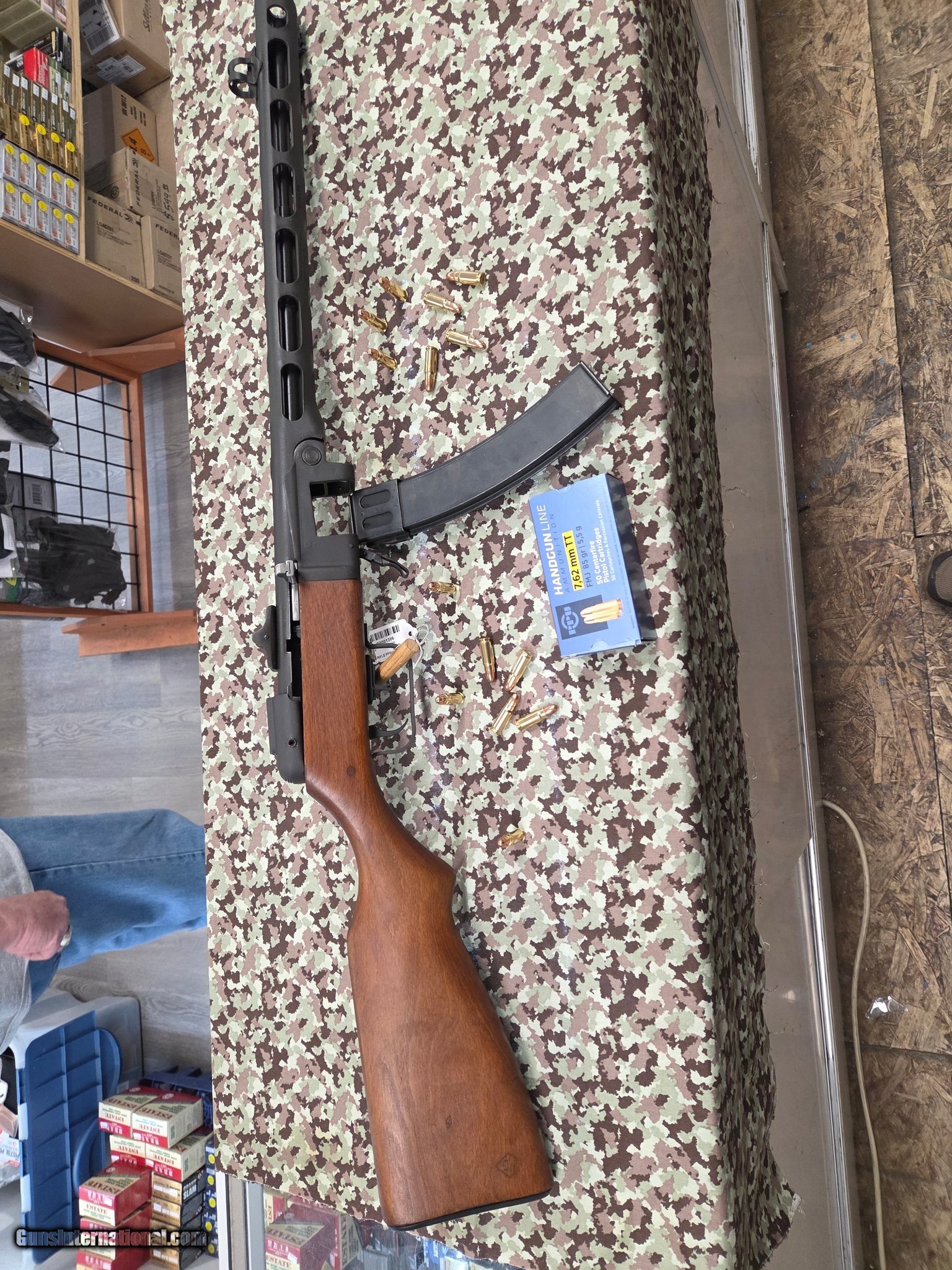 Description: Guns Listing ID: 603689 Very Rare PPSH 41 SA in 7.62x25 Tokarev ! it comes with one magazine function checks perfectly and fire‚s ... The impetus for the development of the PPSh came from the Winter War (November 1939 to March 1940) between the Soviet Union and Finland, when the Finnish Army employed the Suomi KP/-31 submachine gun as a highly effective tool for close-quarter fighting in forests and built-up urban areas. The Red Army‚s older PPD-34 had been in mass production since 1934, but it was expensive to manufacture, both in terms of material and labor, as it used numerous milled metal parts (particularly for its receiver). The firearm-designer Georgy Shpagin wanted to reduce costs by using metal stamping for the production of the parts. In September 1940 Shpagin developed a prototype PPSh which also featured a simple gas-compensator designed to prevent the muzzle from rising during bursts; this improved shot grouping by about 70% relative to the PPD.[ Manufacturer: TNW FIREARMS Model: ppsh 41 sa Caliber Info: 7.62X25MM TOKAREV Condition: Used - Non-Certified Barrels: 18" BARREL Action: SEMI AUTOMATIC Finish: blk Price: $4,999.99 Contact Seller |