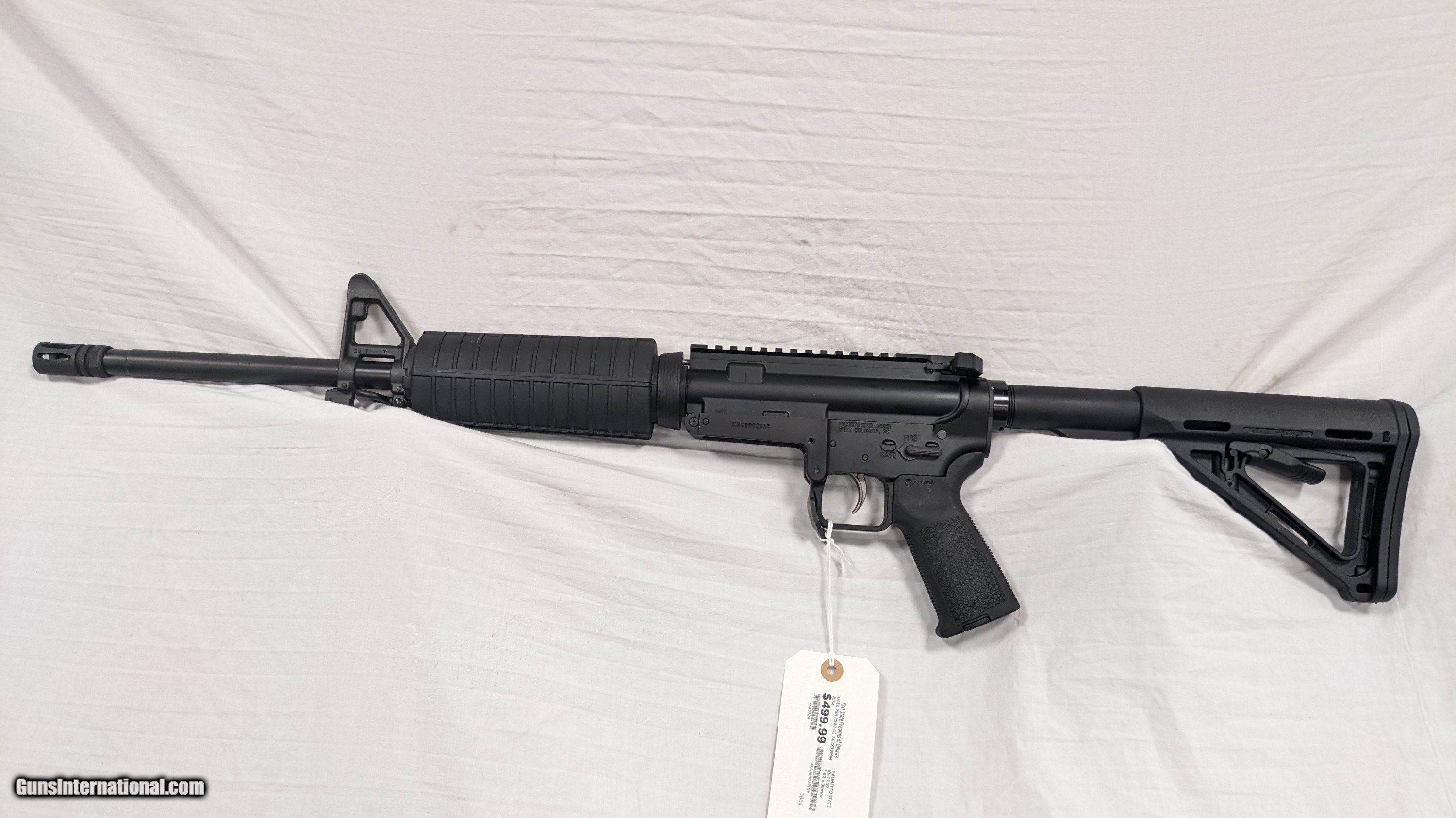 Description: Not legal for DE residents. This is a consignment item. While we do not test fire our used firearms, we perform an inspection and function check to determine the firearm is fully functional to the best of our ability. Please call with any questions. If you are interested in purchasing this item, please give us a call. Please have the "Seller #" and/or "Guns International #" ready along with the contact information for the FFL you'd like the item shipped to. For Sale from First State Firearms of Delaware AKA "The Gun Shop" in New Castle, DE. Shipping is $40.00. Includes $100.00 in shipping insurance. Additional insurance available at buyer's expense and request. SOLD Rifle Caliber: 7.62x39mm Manufacturer: PALMETO STATE ARMORY Model: KS-47 G2 Serial Number: KSG2003818 Barrel Length: 16 INCH Condition: USED, 95% Action: SEMI-AUTO Extras: NONE / GUN ONLY (NO MAG) Case: BOX/CASE INCLUDED |