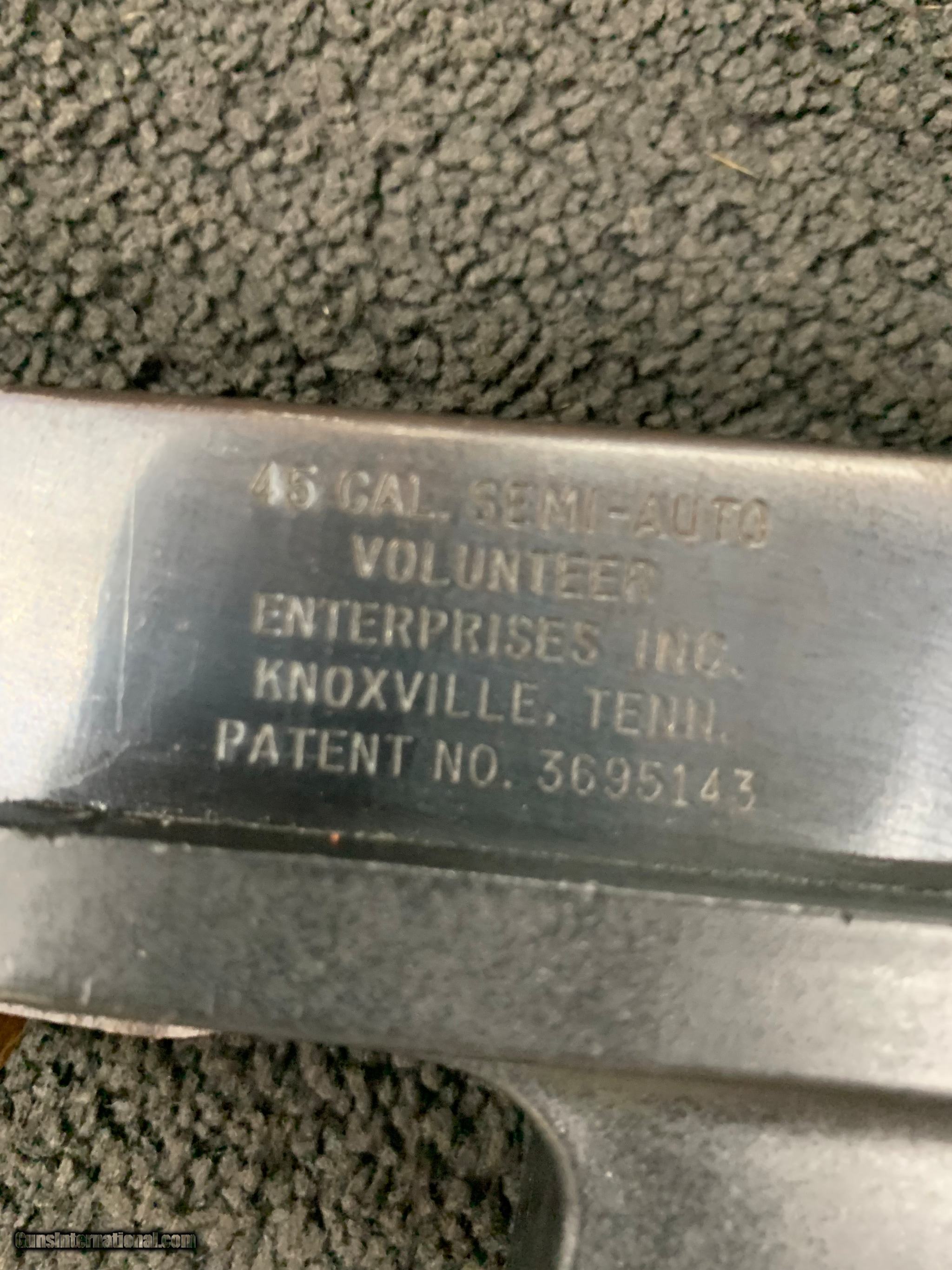 Description: Guns Listing ID: 329811 Volunteer Commando Mark45 Knoxville TN Missing Buttplate SOLD Manufacturer: VOLUNTEER ENTERPRISES Model: commando mark 45 Caliber Info: 45 ACP Condition: Used - Non-Certified Barrels: 18 BARREL Finish: BLUE |