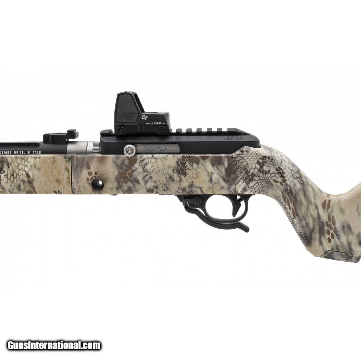 Description: " Take Down varmint rifle with threaded 16"" fluted bull barrel. Kryptek camo. Has Crimson Trace Rad Max Pro optic and Binary trigger. NEW. SOLD |