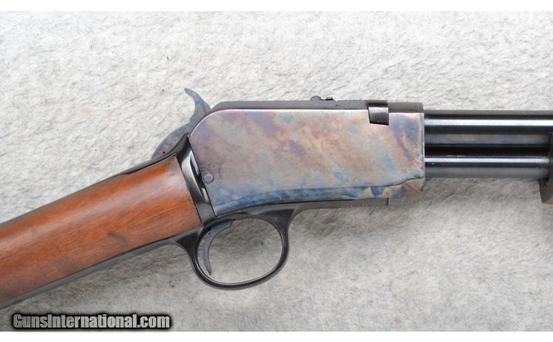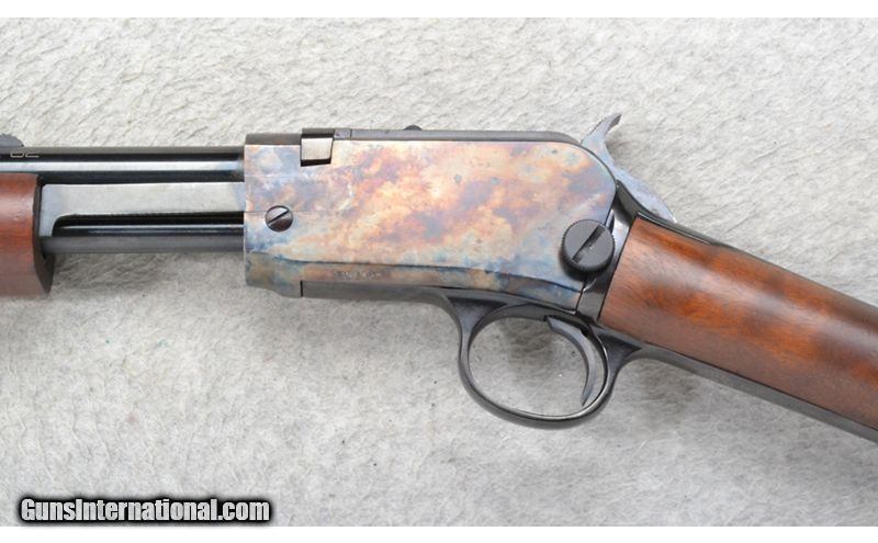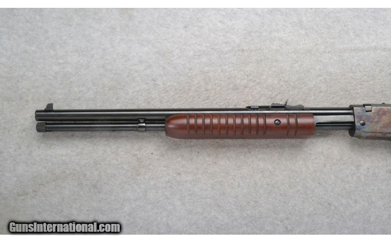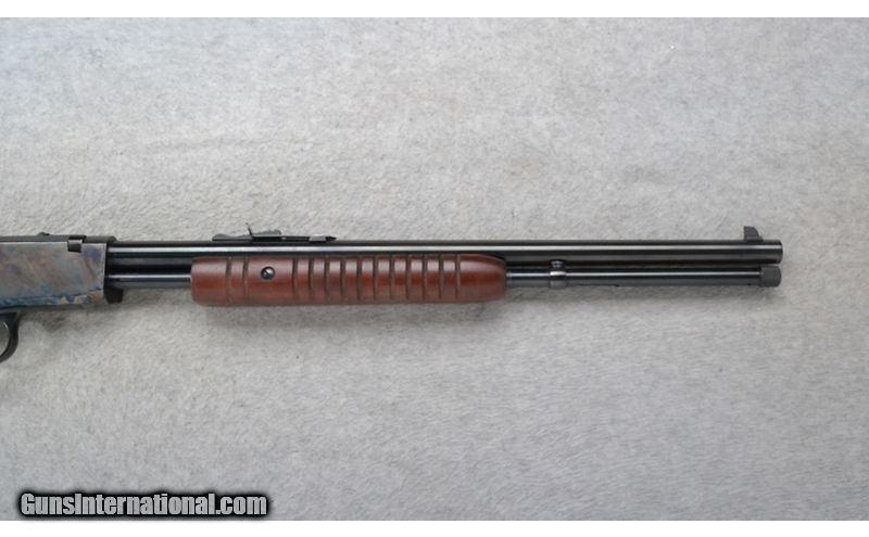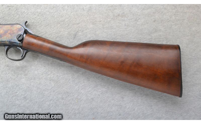 Description: This Taurus Model 62 is a pump action repeating rifle in .22 Long Rifle Cal. It has a 16.5 inch barrel. A blade front sight and an adjustable notch middle sight. The butt stock is a smooth grip hardwood straight grip. The forearm is a grooved grip hardwood. It has a case colored receiver. .22 Long Rifle SOLD Chambers: Tube Magazine. Metal Condition: Excellent. Wood Condition: Very Good. Some minor use marks. Bore Condition: Excellent. Barrels: 16.5 inches. Stock Dimensions: LOP 13 inches. Fore End: Grooved grip hardwood. Butt Pad: Taurus black plate. Weight: 4 lb. 12 oz. Sights: Short blade front. Adjustable notch middle. Item Location: Richfield, WI |