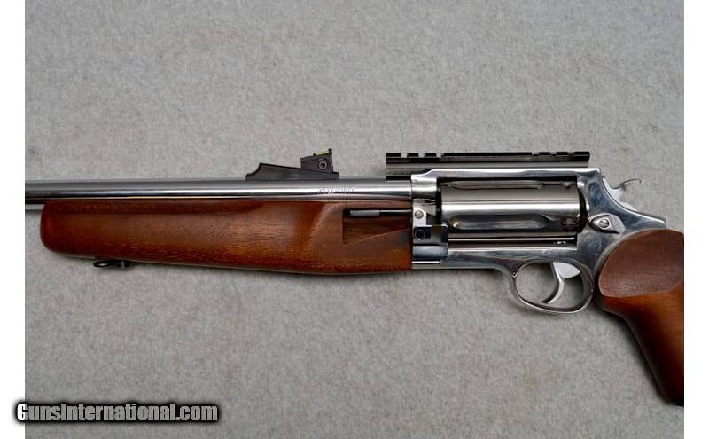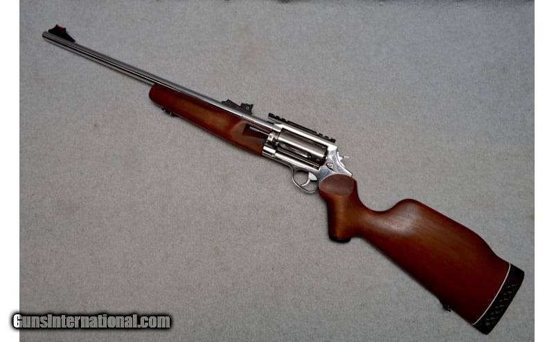 Description: Overall Excellent condition. A couple of light scratches on the wood, Stainless is excellent. Some call it "the best of both worlds." We call it the most fun you can have in a long-rifle platform. Chambered for both 45 Colt and 410 bore shotshells up to 3-inch Magnum, the Circuit Judge® is a diverse hybrid rifle inspired by the heralded Taurus Judge® revolver.Features a five-shot cylinder and a single-action/double-action trigger system for precision or rapid-fire shooting, the Circuit Judge® provides modern rifle performance with a classic revolver feel. .45 Colt / 410 Gauge SOLD Barrels: 18 inches Weight: 5.4 lbs Item Location: Avon, OH |