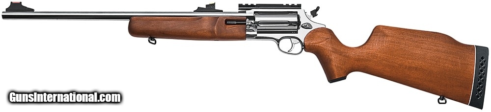 Description: Guns Listing ID: 49260 This Taurus Circuit Judge is a double-action revolving long gun chambered for 45 LC and 410 bore shells. An 18-inch stainless steel barrel is adorned with a notch rear sight and a fiber-optic front sight. The stainless finish of the Circuit Judges steel components is handsomely complemented by the smooth wood stock and forend. A recoil pad cushions users shoulders on each shot, while sling loops allow for easy sling installation. SOLD Manufacturer: TAURUS Model: CIRCUIT JUDGE Caliber Info: .45 LC/.410 GA Condition: new Barrels: 18 BARREL |