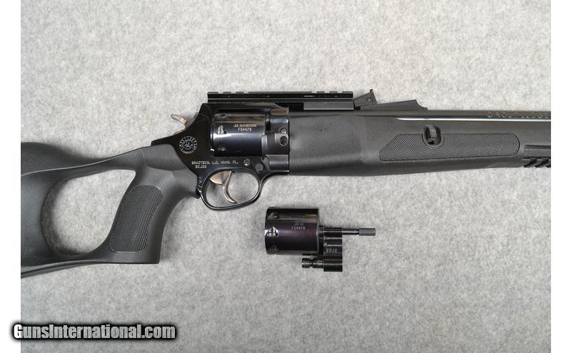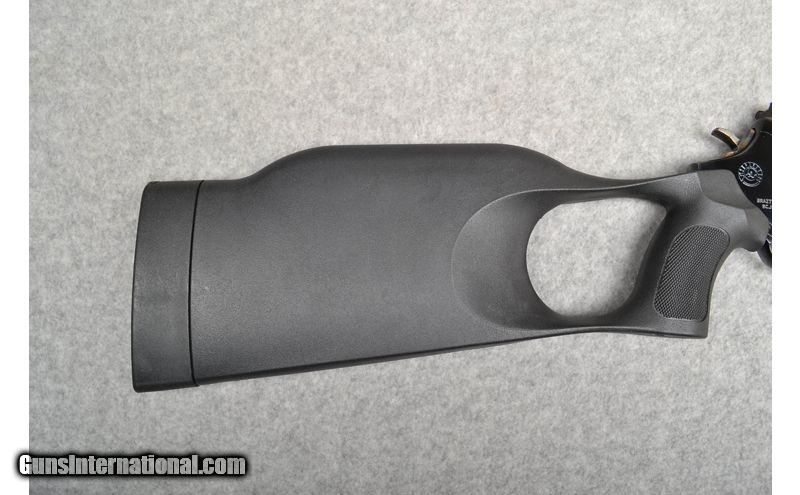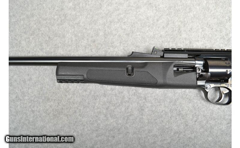 Description: This unique Taurus Circus Judge allows you to shoot the .22 LR/.22 Magnum with a revolver action in a rifle platform. .22 Long Rifle/.22 Mag SOLD Chambers: .22 LR/.22 WMR Metal Condition: Great Bore Condition: Great Barrels: 18.5 Stock Dimensions: 14.5" LOP Butt Pad: Synthetic pad Weight: 5 lbs 6 oz Sights: Fiberoptic iron sights, includes rails for scoped optics Item Location: Columbus, OH |