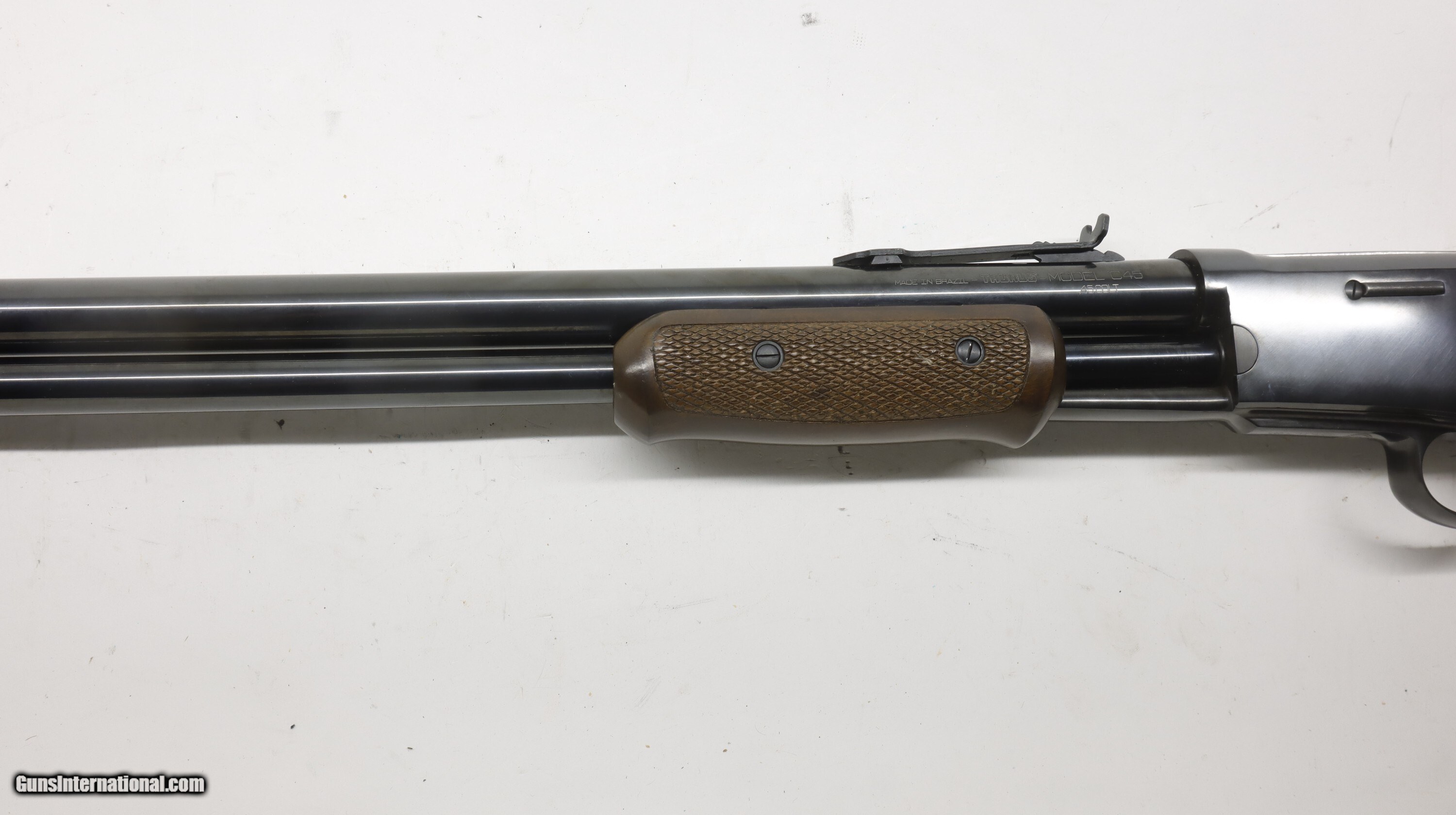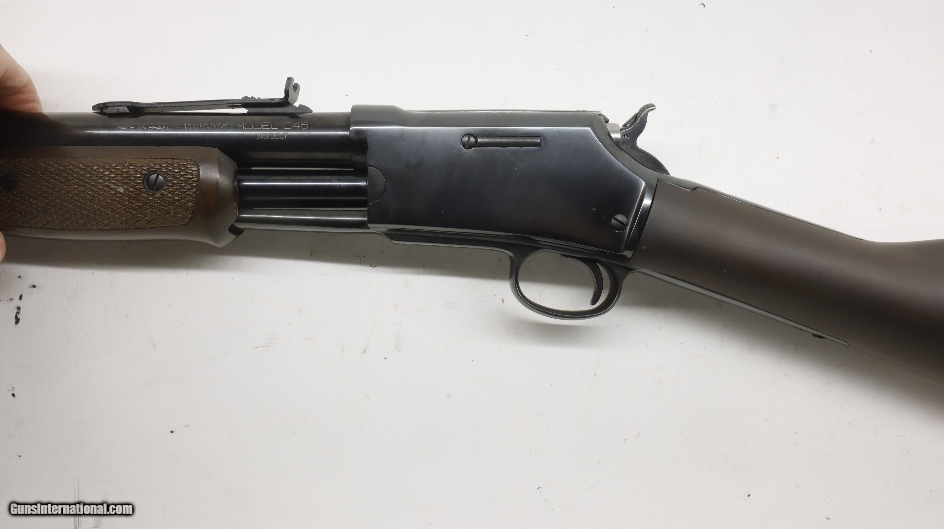 Description: Taurus Rossi C45 Colt Lighting 45LC 26" new old stock, blued, in the factory box. We will trade for silver and gold coins and bars. We are an 07 dealer and deal in machine guns! Used guns might need a good cleaning to bring the gun up to your standards. We buy and trade for guns. All my guns (except layaway) come with a non-firing, 3 day unconditional return privilege, from the day UPS delivers to your dealer. Buyer pays shipping both ways if the gun comes back. Please make sure to make it to your FFL to inspect within the 3 days. We can hold until you know you can make to your dealer in your 3 day window. We accept personal check or any certified funds. We can also take your credit card, +3%. Email me if you would like these pictures sent to you, they will come through bigger and better than on the listing page here. We do offer Layaway. Our standard terms are 25% down, 90 days. Initial deposit is not refundable. Layaway guns do not have a return/inspection period. Email me with any questions. Please check your local laws to confirm it is legal to own in your state! Buyer pays $30 shipping and insurance to your FFL in the lower 48. AK, HI or PR is extra. I will ship to California, as long as it is legal, NO PROBLEM! I am a licensed FFL, and will include a copy of my FFL with the gun for your dealer’s records. I will ship to a C&R if the gun is eligible. I will ship to California, but you need to confirm the gun is legal where you are, California or other. WE BUY AND CONSIGN GUNS AND GUN COLLECTIONS! Will travel! We can do your machine guns! I am always looking for good clean, old original Winchesters to buy, consign, or trade, especially Pre '64's model 70's and model 54's. WE ALSO TRADE FOR CLASSIC CARS AND TRUCKS! We also trade for gold and silver. SOLD Rifle Caliber: .45 Colt Manufacturer: Taurus Model: C45 Barrel Length: 26 Condition: New Old Stock |