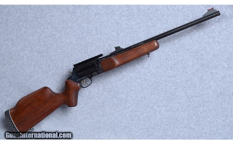 Description: Some call it "the best of both worlds." Rossi call it the most fun you can have in a long-rifle platform. Chambered for both .45 Colt and .410 bore shotshells up to 3-inch Magnum, the Circuit Judge is a diverse hybrid rifle inspired by the heralded Taurus Judge revolver. Features a five-shot cylinder and a single-action/double-action trigger system for precision or rapid-fire shooting, the Circuit Judge provides modern rifle performance with a classic revolver feel. This rifle/shotgun is in excellent condition and has seen very little use. It is being sold without the straight rifled choke that Ross recommends be used with .410 loads. .45 Colt/.410 SOLD Chambers: 3" .410 chamber Metal Condition: Excellent Wood Condition: Very good. There are a few minor dings. See photos. Bore Condition: Excellent Barrels: 18.5" rifled barrel Triggers: Single or double action Stock Dimensions: 14" LOP Butt Pad: Rossi Weight: 5.3 lbs Sights: "Fiber optic front & rear sight, rear sight adjustable for elevation and windage; Weaver rail for scope or optic mount Chokes: Thread protector sleeve for .45 Colt Item Location: Boise, ID |