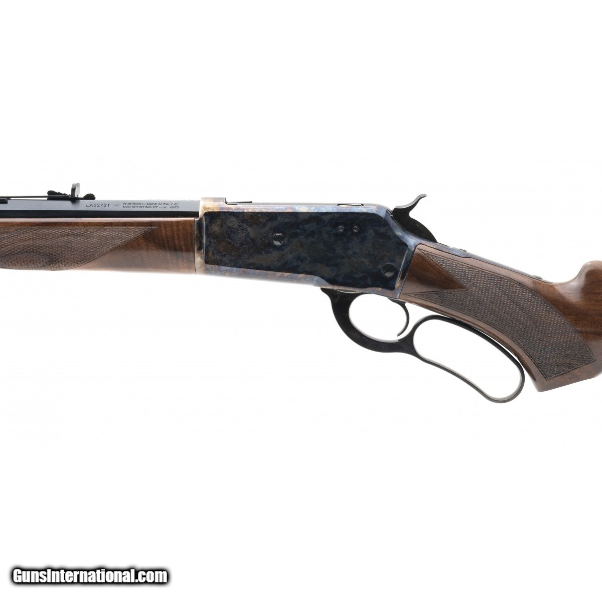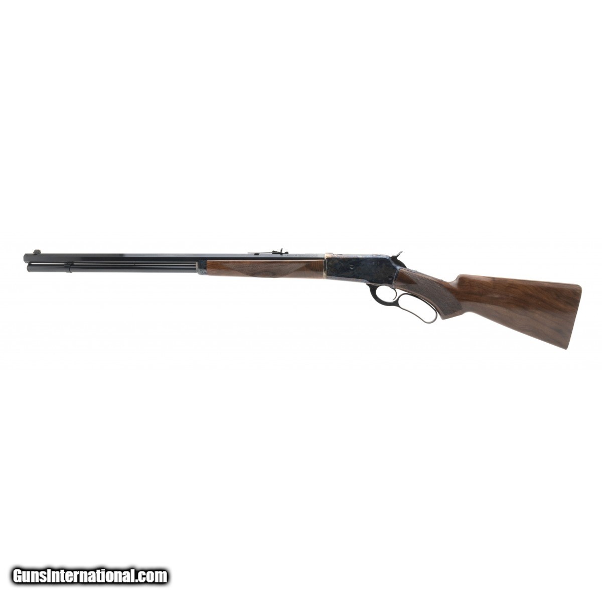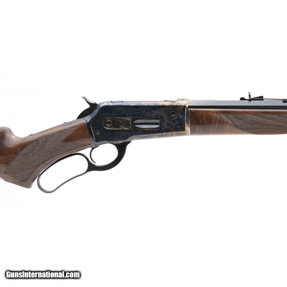 Description: " 1866 patterned lever action rifle with a 26"" octagonal barrel, color case hardened receiver, walnut stock and, an adjustable rear sight. NEW. UPC:839665000427. SOLD |
