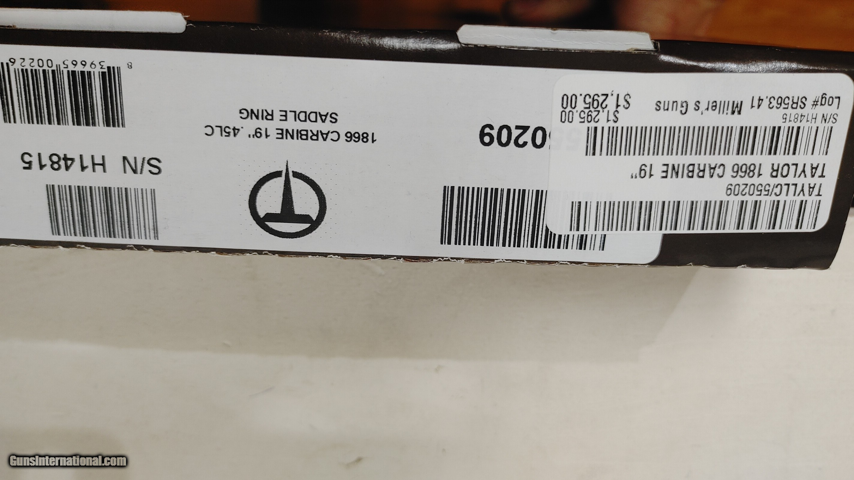 New Taylor 1866 Carbine 19" .45LC Saddle ring new in box