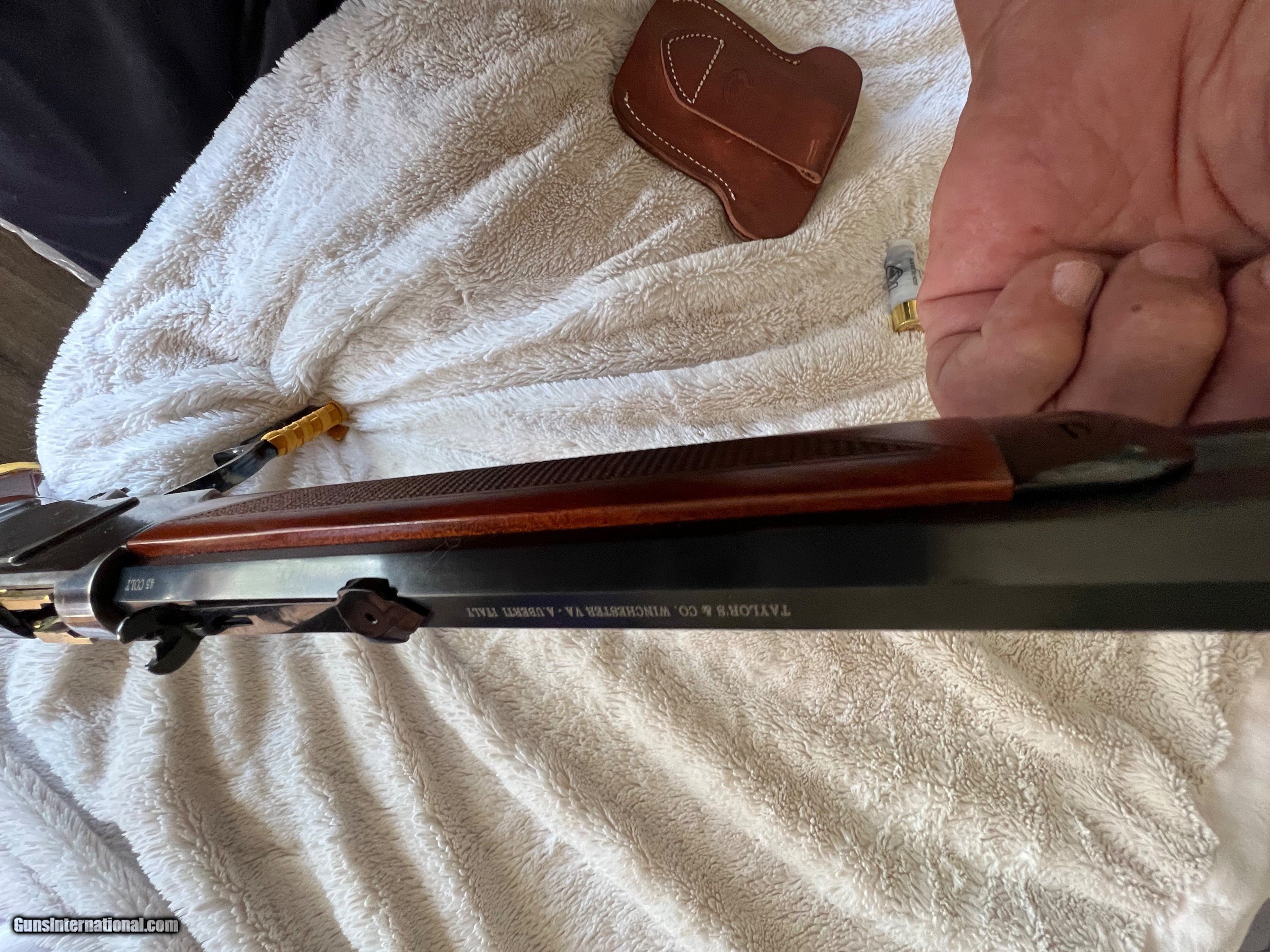 Description: New in box never shot Taylor Commenchero 45 Colt rifle new perfect condition $1,650 $100 shipping and insurance to FFL beautiful rifle SOLD Manufacturer: Taylor Model: Commenchero Condition: New Metal Condition: New Wood Condition: New Bore Condition: New |