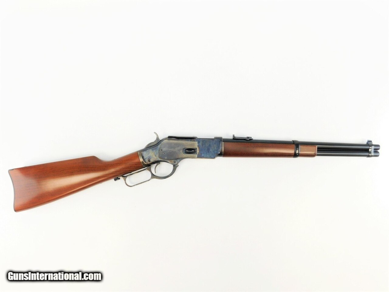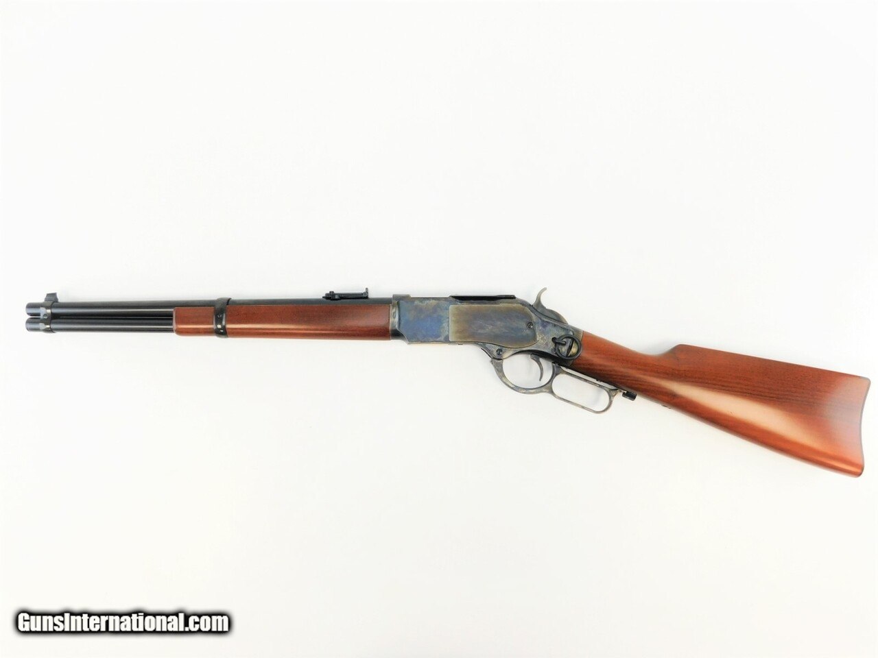 Description: Manufacturer: Taylor's & Co. Model: 1873 Carbine SKU: 550014 Caliber: .45 Long Colt Capacity: 9 Rounds Barrel Length: 16.125" Blued Overall Length: 35" Weight: 7.2 lbs Stock: Walnut Finish: Case Hardened with Saddle Ring Sights: Front - Blade / Rear - Ladder All items are factory new in box unless otherwise stated. Based on the information available to us, the above specifications describe this item to the best of our knowledge. For further information, please contact or visit the manufacturer's . SOLD |