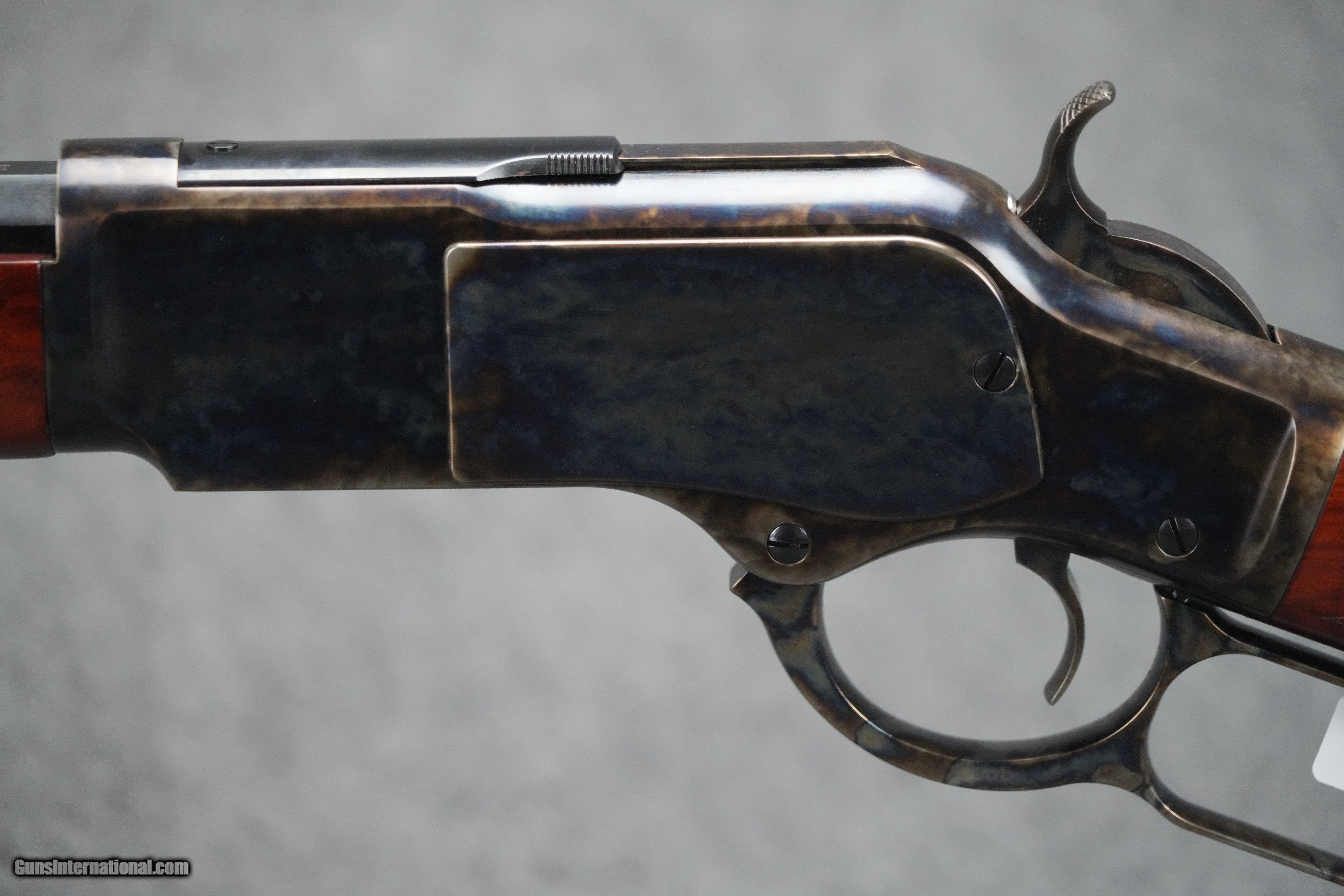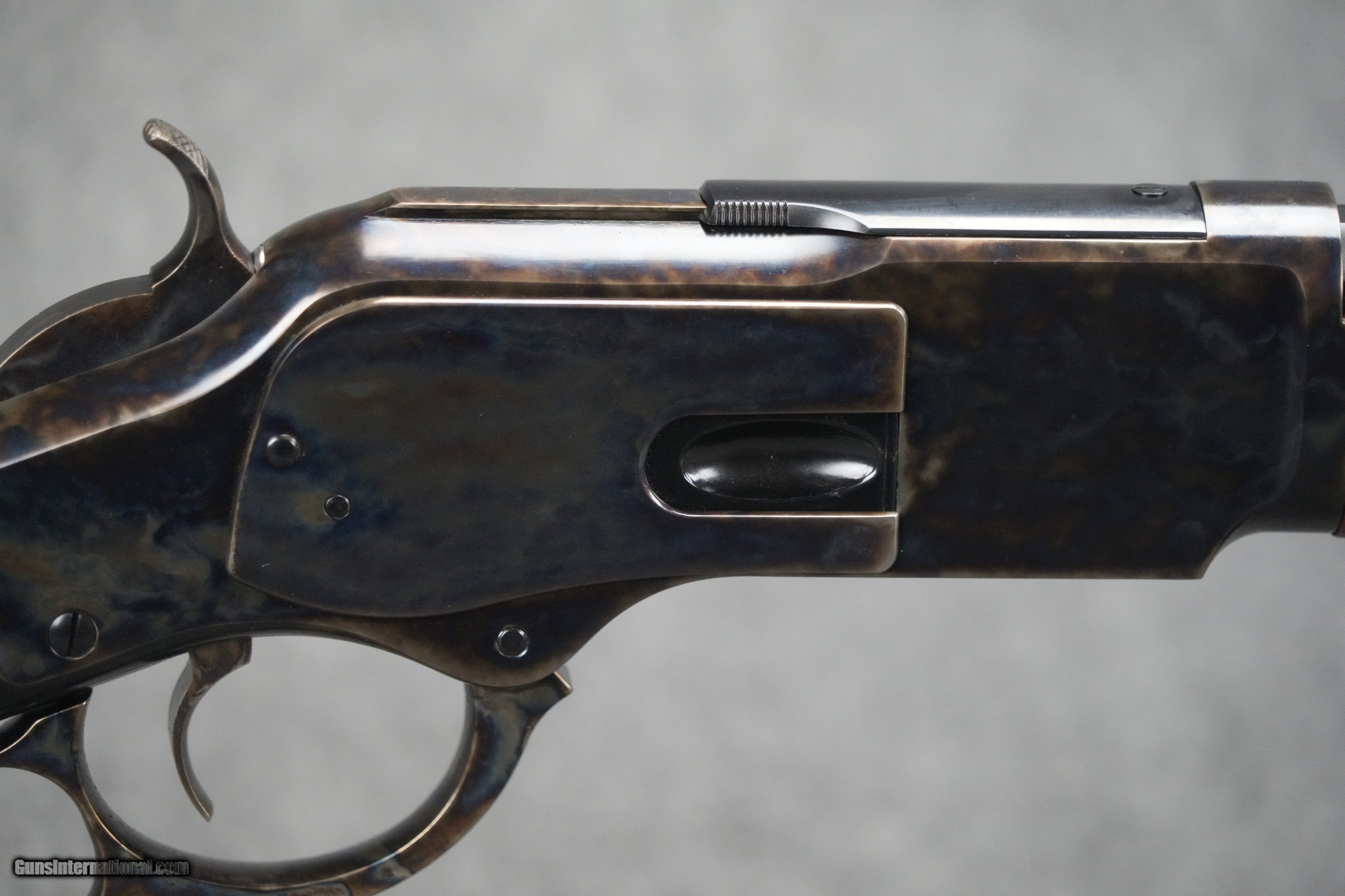 Description: *NOTE: The firearm pictured is the ACTUAL gun for sale! All images are of the ACTUAL item, unless specified otherwise. The item seen is the item you will receive. * The 1866 was already quite popular when the smaller, yet quite similar 1873 model was released. It became an immediate favorite. The Winchester Repeating Arms Company may have thought that domestic military sales would make up most of the orders for the firearm, but in fact, civilian sales and international military purchases were what brought in profit that year. In that day, the 1873 was the first lever action available with a broad variety of options. Today, an array of options is still offered in Taylor's 1873 line. The pistol grip model features a classic checkered pistol grip buttstock and checkered forend, case hardened frame, full octagaonal barrel. Check out the specs below on this specific model! SKU 550176 WEIGHT (LB) 8.2 ACTION TYPE Lever action BARREL BORE DIAMETER 0.442" BARREL CONTOUR Octagonal BARREL FINISH Blued steel BARREL GROOVES 6 BARREL LENGTH (IN) 24.25" BARREL TWIST & ROTATION RH 1x16" BUTTPLATE/PAD Blued steel CALIBER .45LC CAPACITY 13 FIRING PIN TYPE Traditional FRONT SIGHT Dovetail blade FOREND FINISH Checkered walnut FRAME FINISH Casehardened steel HAND DOMINANCE RH MANUFACTURER Uberti OVERALL LENGTH (IN) 43.25" REAR SIGHT Dovetail buckhorn STOCK FINISH Checkered walnut TRIGGER TYPE & PULL Single trigger TRIGGERGUARD FINISH Casehardened steel SOLD Rifle Caliber: .45 Colt Manufacturer: Taylor's & Co Model: 1873 Barrel Length: 24.25" Barrel Condition: BRAND NEW |