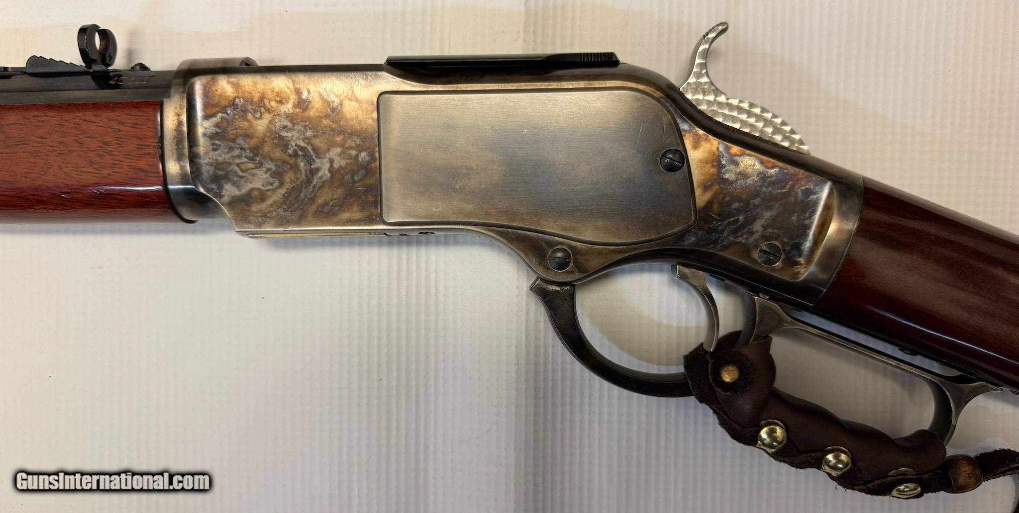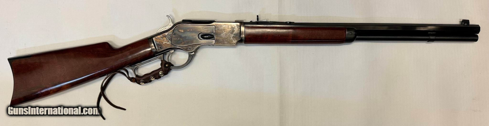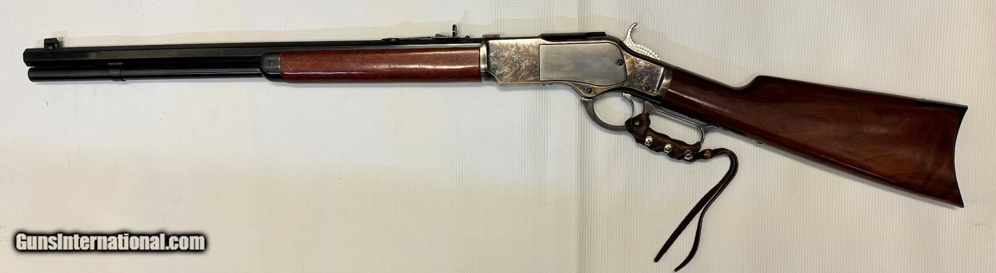 Description: Guns Listing ID: 1090417 Taylors and Company Uberti reproduction of Winchester‚‚s 1873 repeating rifle \"The Rifle that Won the West\" comes chambered in .357 magnum with a 20\" barrel. It features a color Case-hardened frame, cowboy action, jeweled hammer, a straight stock with checkering, octagonal barrel, enhanced grip, leather wrapped lever, tuned trigger, and a rear adjustable sight SOLD Manufacturer: TAYLOR‚‚S & CO Model: 1873 Caliber Info: .45 COLT/.45 ACP Condition: Used - Non-Certified Barrels: 20 BARREL Finish: WALNUT, BLUED |