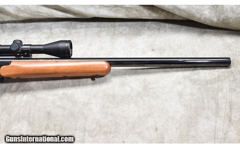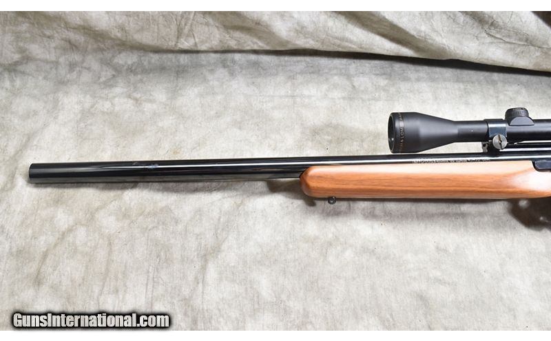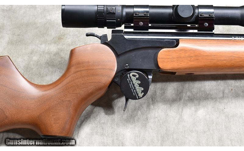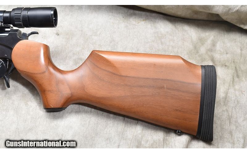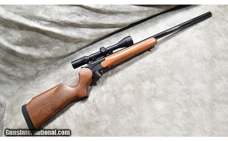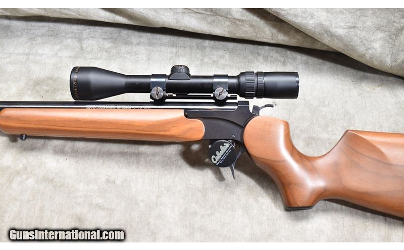 Description: A Thompson/Contender Custom Shop rifle featuring a sculpted pistol grip, heavy contour barrel, Limbsaver gel pad to control recoil, and outfitted with a scope. .45-70 Government SOLD Chambers: Single Shot Metal Condition: Excellent. Wood Condition: Excellent. Bore Condition: Shiny and bright Barrels: "26-inches, Heavy (.990 Diameter) Triggers: Factory trigger. Stock Dimensions: 14-3/8 inch LOP Fore End: Well-matched hardwood. Butt Pad: "Soft rubber, Limbsaver (TM), pad Weight: 9 LB - 10 OZ Sights: "Set up for scope and outfitted with a Bausch and Lomb Elite 3000, 3-9x scope. Item Location: Rogers |