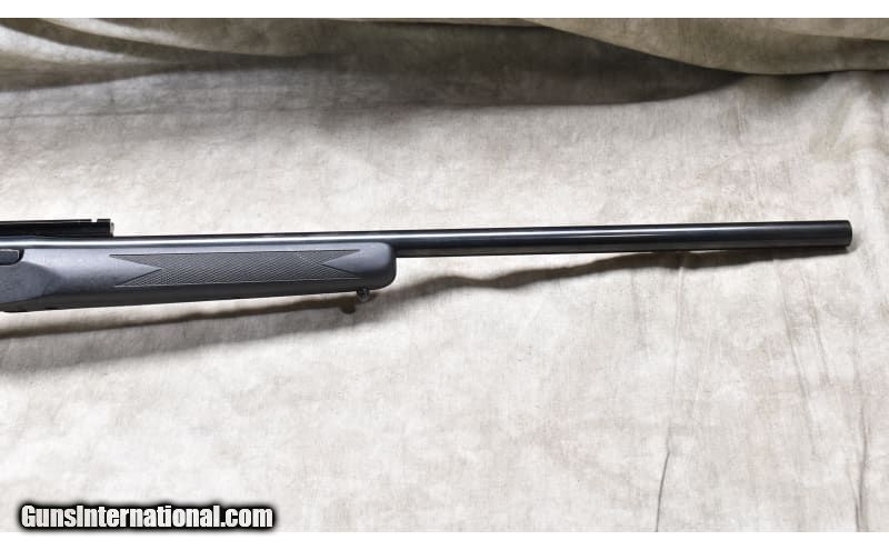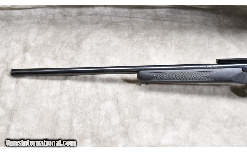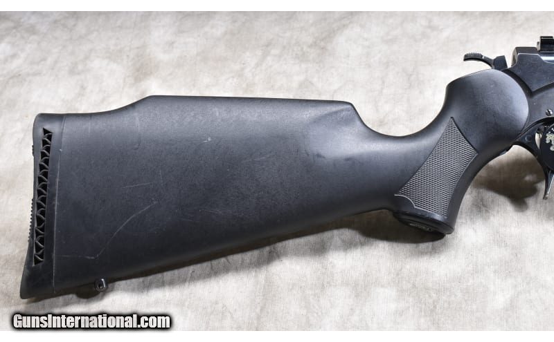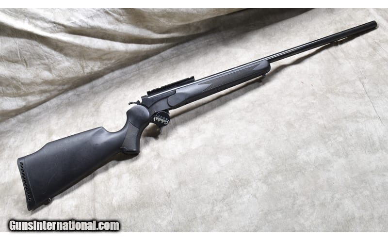 Description: Nice synthetic stocked single shot rifle for the woods-runner. It features a 26-inch barrel, medium-heavy barrel, and stock with pistol grip and elevated comb. 7mm Remington Magnum SOLD Chambers: Single Shot Metal Condition: Very good. Wood Condition: Very good Bore Condition: Shiny and bright with good rifling. Barrels: 26-inch Triggers: Factory trigger. Stock Dimensions: 14-inch LOP. Fore End: Matching black synthetic. Butt Pad: Ventilated rubber pad. Weight: 7 lb - 4 oz Sights: Set up for your choice of scope. Item Location: Rogers |