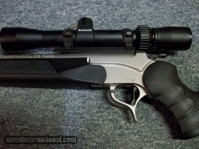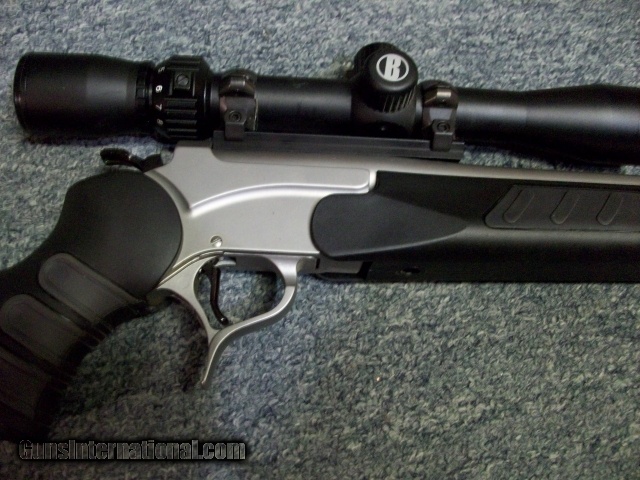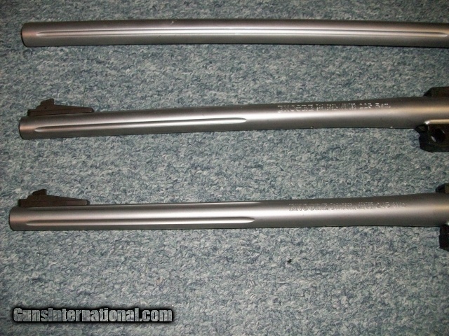 Description: This STAINLESS STEEL Thompsom Center Encore rifle has THREE FLUTED barrels. Condition 100%. Complete set $1500.00. With one barrel $1025.00. Barrels separately $400.00 each. One 28" FLUTED PRO HUNTER barrel in .338 Fed SOLD |