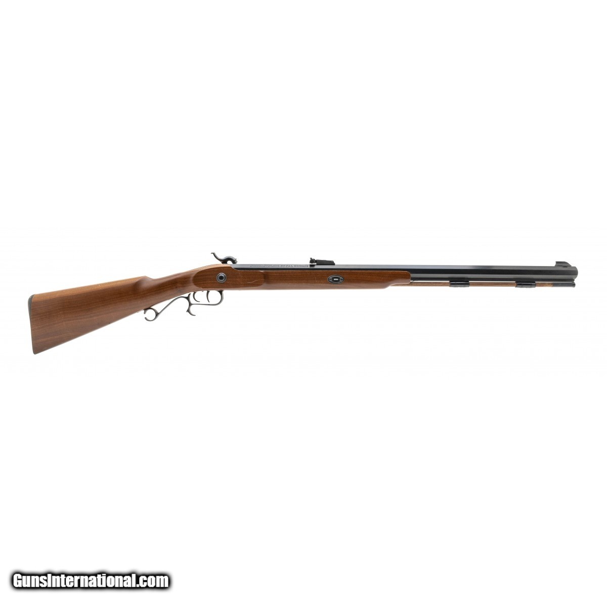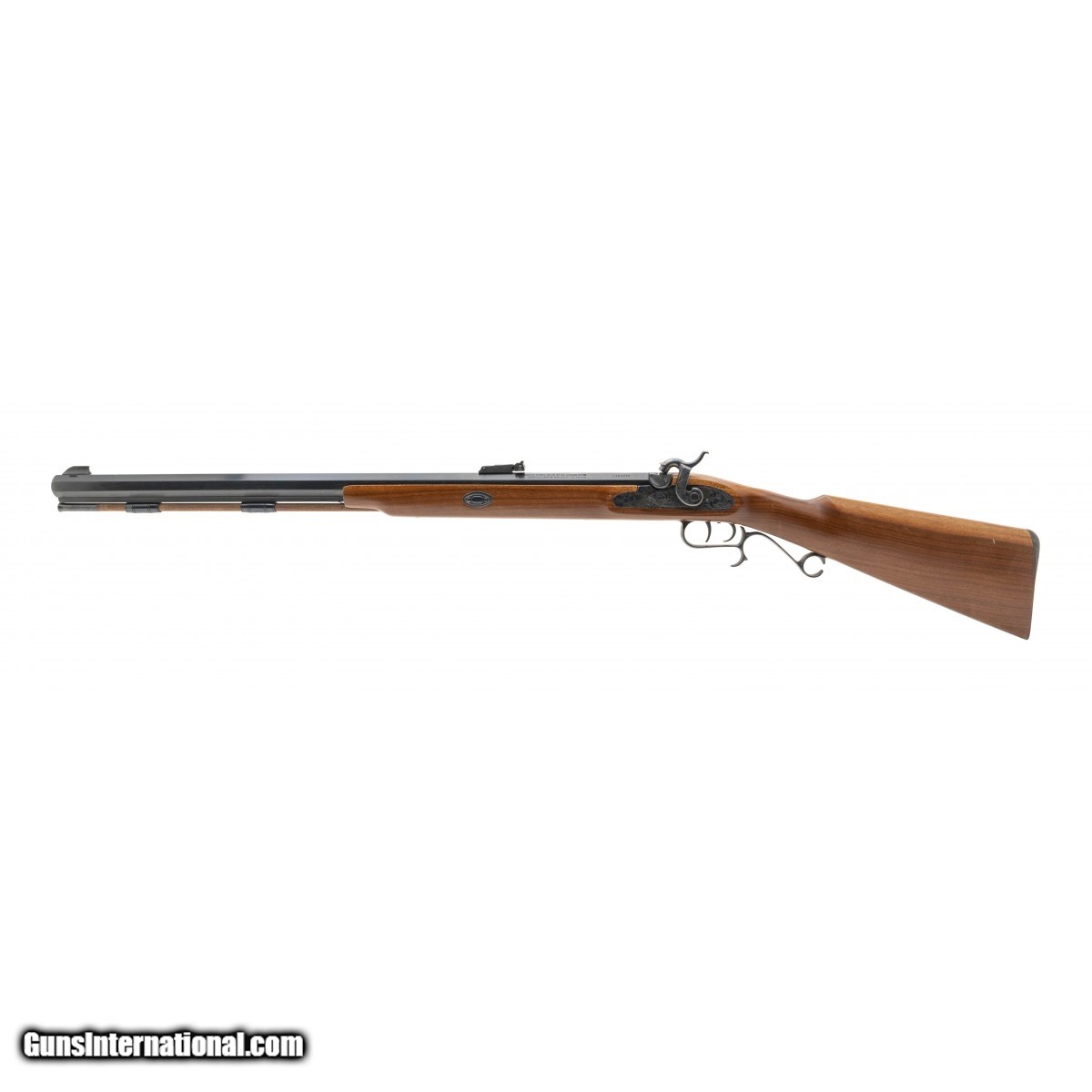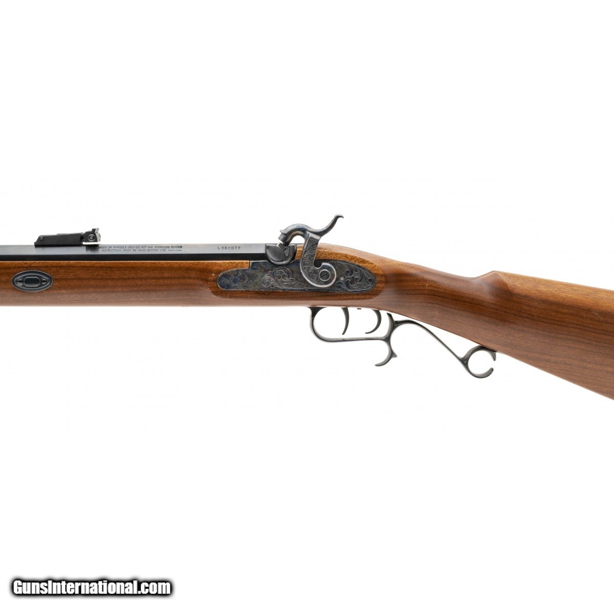 Description: " 1980's production, .50 cal percussion with a 27"" barrel. Scarce left hand percussion muzzle loader rifle. Has double set triggers. Excellent condition overall. SOLD |