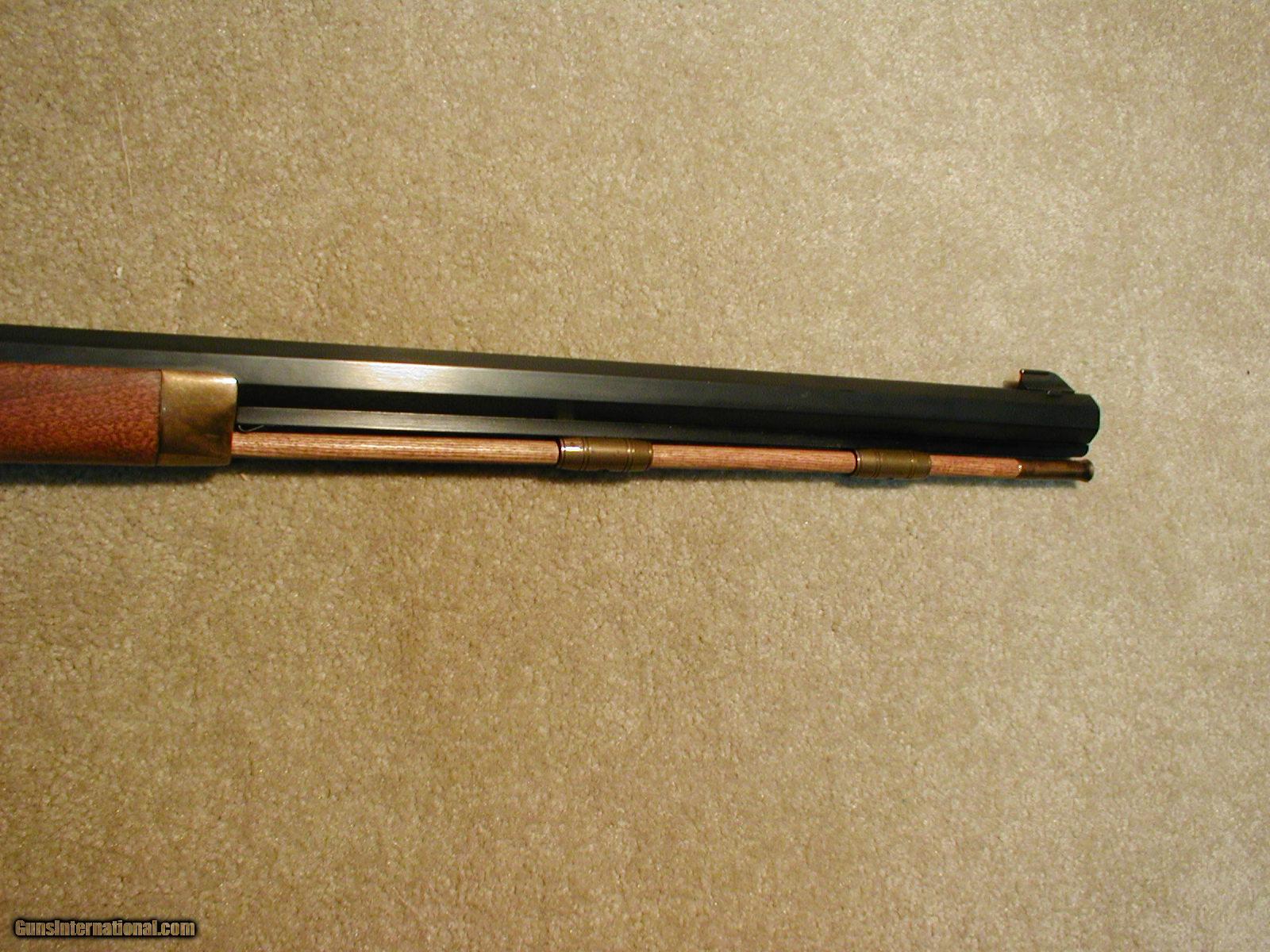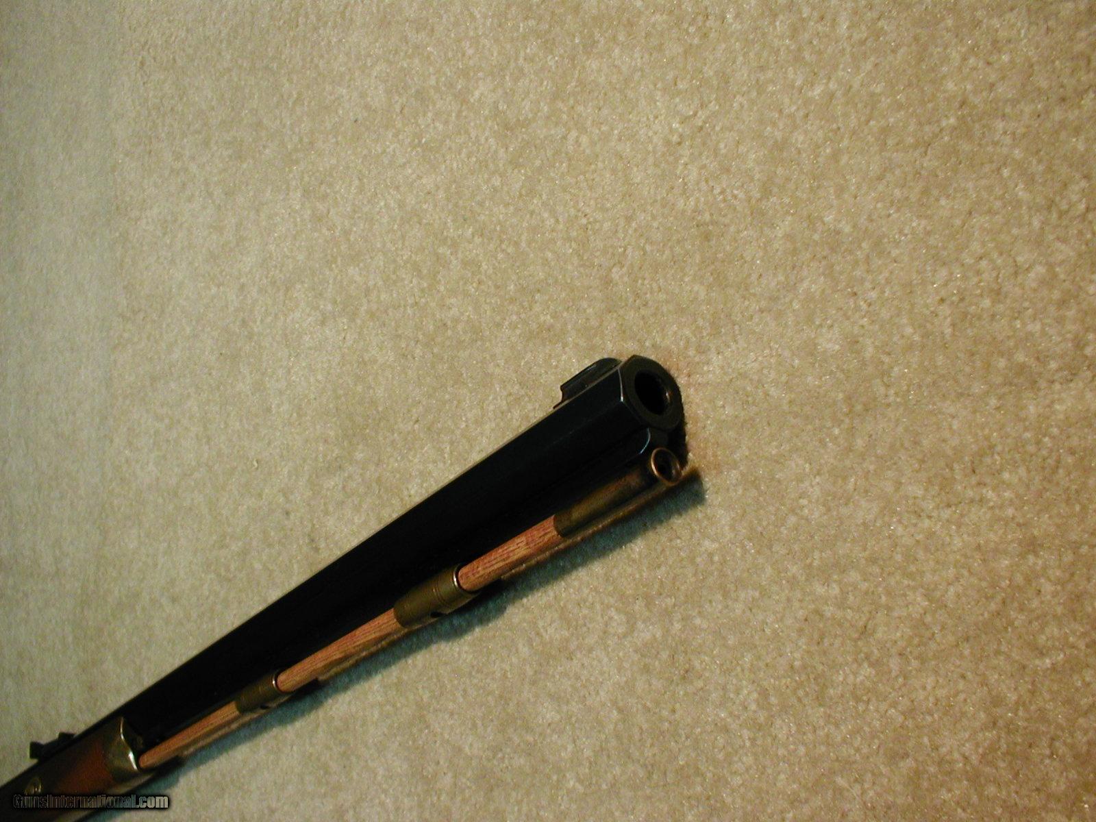 Description: DISCONTINUED THOMPSON CENTER HAWKEN, .50 CALIBER PERCUSSION HALF STOCK MUZZLE LOADING RIFLE, hard to believe these fine American made frontier style rifles are no longer made and that plastic stocked bolt action models have taken their place! Sad, but true. Superb quality and accurate with either round ball or Maxie Bullet, adjustable rear sight, finely finished walnut stock, brass mounted with patchbox (containing a cleaning jag), double set triggers, nicely case colored lock and hammer with blued 28" barrel, shows only the lightest of handling marks- near new overall with exc. bore, a class act and all made in the U.S. instead of Italy! Prices are rapidly going up on these now that they are no longer made. SOLD Antique: Yes Manufacturer: Thompson Center Model: HAWKEN Serial Number: 159XXX Caliber Info: .50 PERC Condition: near new Barrels: 28" OCT. |