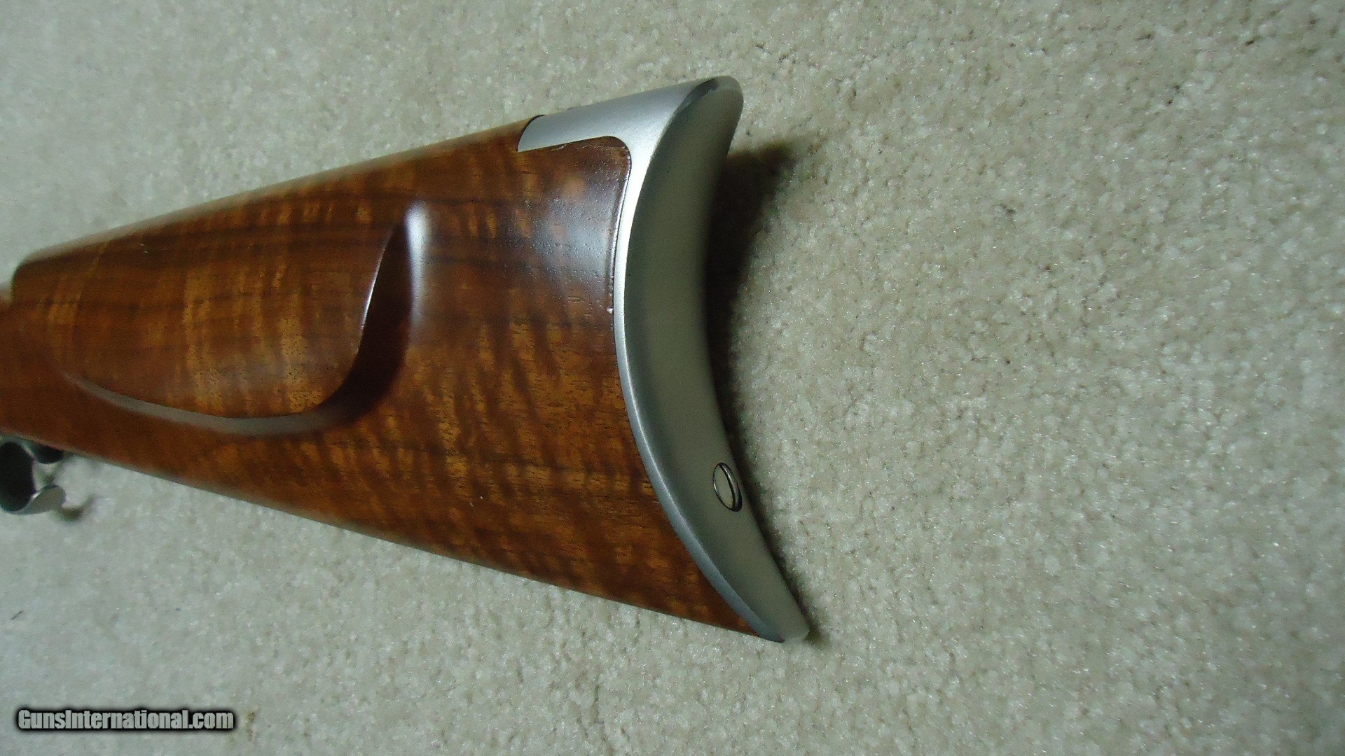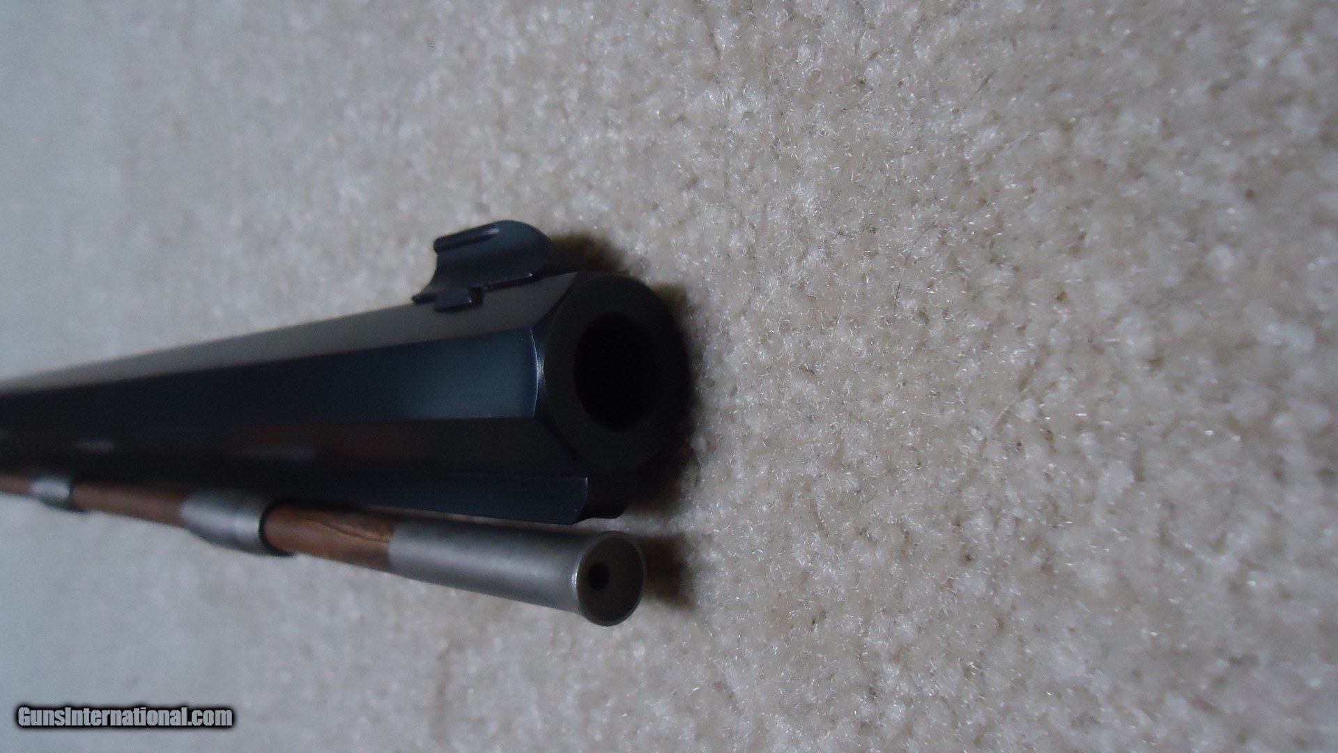 Description: LONG DISCONTINUED THOMPSON-CENTER SPECIAL RUN HAWKEN COUGAR HALF-STOCK RIFLE IN .50 CALIBER PERCUSSION, WITH ORIGINAL BOX, #2XXX. I believe T-C did two special runs of these upgraded Hawken rifles- one in 1987 and one in 1992. They were made only in .45 and .50 caliber- and featured stainless steel parts (instead of brass in the standard model), have fancy walnut stocks and have a round medallion in the stock with a cougar embossed in it. This rifle comes with the original matching numbered box which states on the end, "HAWKEN COUGAR, A PRESENTATION CAP LOCK MUZZLE LOADING RIFLE, 'STAINLESS STEEL,' Featuring the Finest of Hand Selected Walnut." This rifle appears unfired and has particularly fancy walnut. It also has a hooked breech for easy barrel removal, double set triggers, fully adjustable sights and a coil spring lock (as printed on the box cover). The best part is that these T-C traditional muzzle loaders were made entirely in the U.S.A. The 1 in 48" twist rate of the rifling makes it suitable for either patched round ball use or loaded with a "Maxie" bullet with a heavy charge of black powder to duplicate the power of the big buffalo cartridges of the 1870s. It's a shame T-C doesn't still make these! rd to find with such fine walnut and new in the box. SOLD Antique: Yes Manufacturer: THOMPSON-CENTER Model: HAWKEN COUGAR Serial Number: 2XXX Barrel Length: 28" OCTAGON Condition: NEW IN BOX |