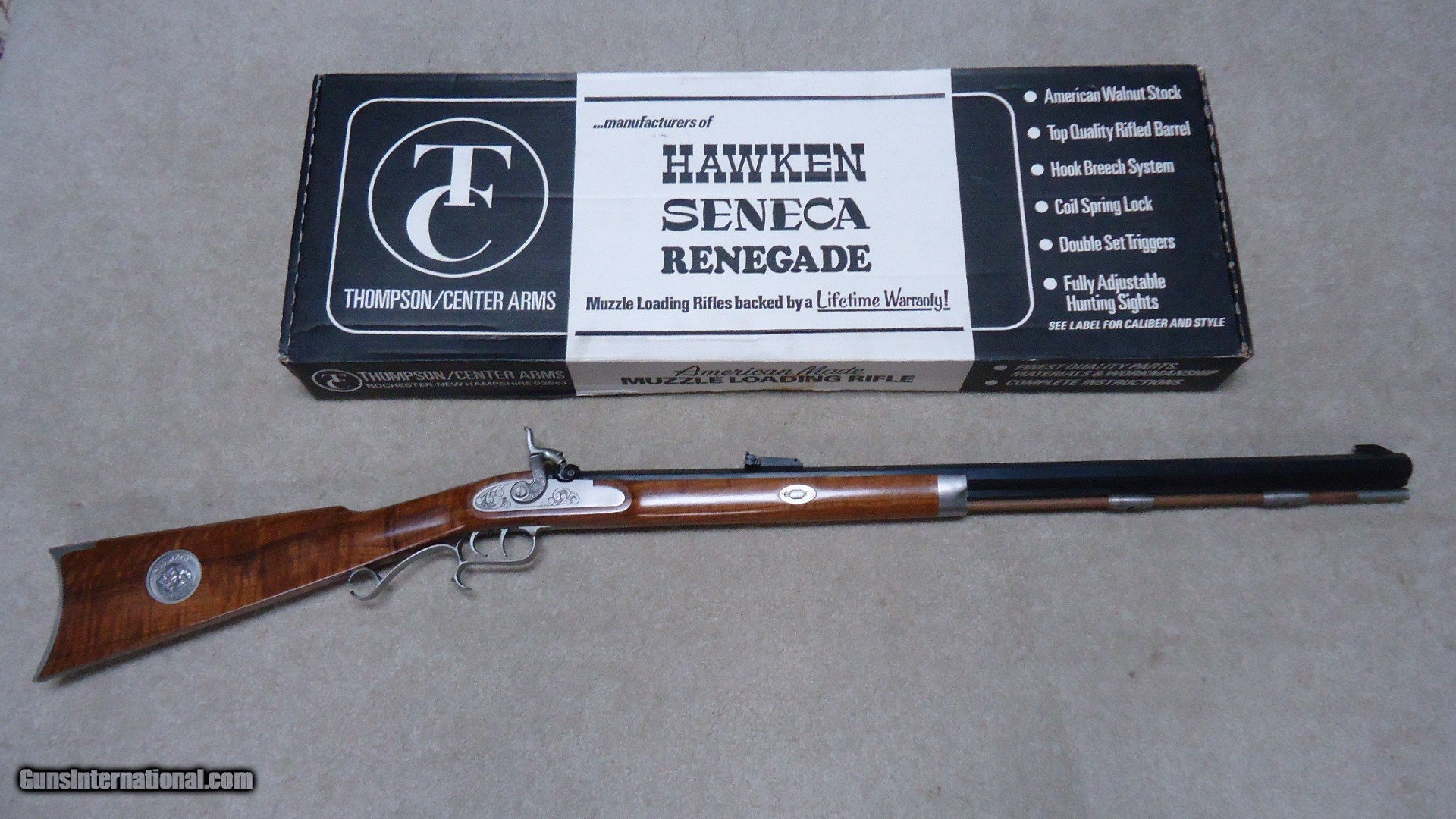 DISCONTINUED THOMPSON-CENTER SPECIAL RUN HAWKEN COUGAR IN .50 CALIBER PERCUSSION, WITH ORIGINAL BOX