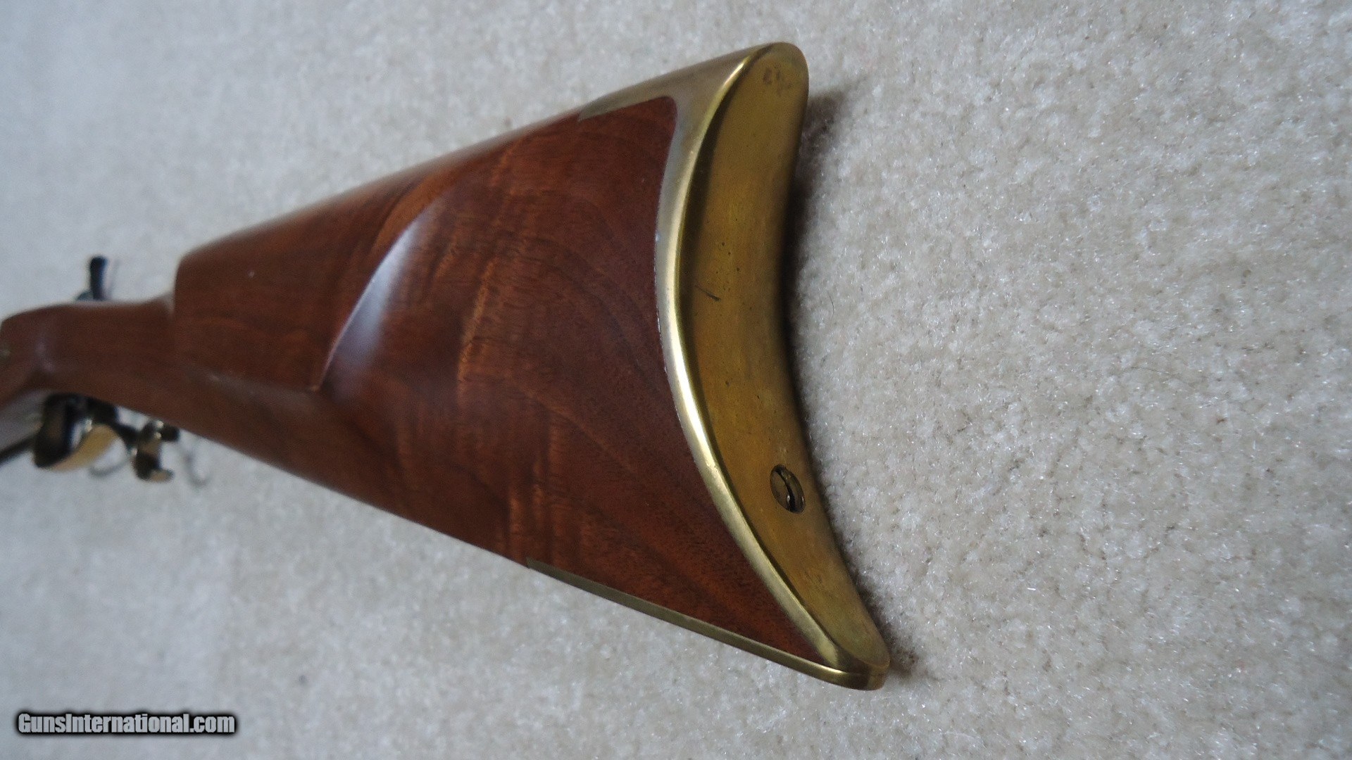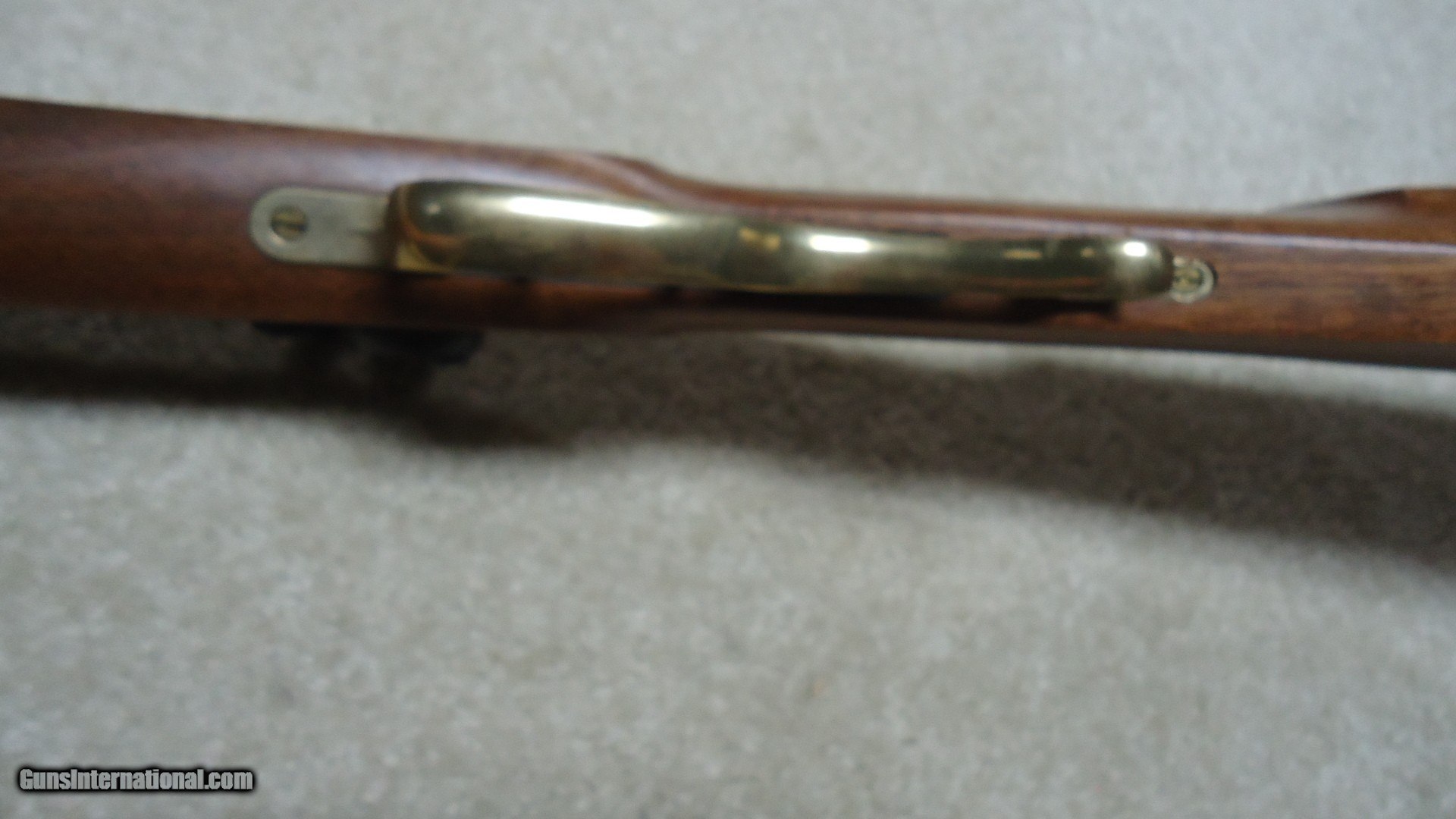 Description: LONG DISCONTINUED THOMPSON-CENTER SENECA MODEL HALF-STOCK PERCUSSION RIFLE IN .45 CALIBER. Made in much fewer numbers than the popular Hawken series of rifles, the Seneca was based on a New England light sporter. They were made in .36 caliber and .45 caliber. The .45 is the most versatile which can be used with a .440" patched round ball and a light/modest powder charge for target, plinking or small game, while it can also be loaded with a T-C "Maxi Ball" and a heavy charge of black powder to take most big game species. Nicely figured walnut stock, adjustable double set triggers, brass furniture and patch box and adjustable rear sight are all standard features on these attractive Made in America rifles. I've been shooting mine since I bought it new in the 1970s! These are getting to be hard to find in any condition and this one is like new overall. I'd rather have one of these than any similar muzzle loader made in Italy that would cost more money than this. SOLD Antique: Yes Rifle Caliber: .45 Manufacturer: THOMPSON-CENTER Model: SENECA Serial Number: 45XXX Barrel Length: 28" OCTAGON Condition: LIKE NEW |