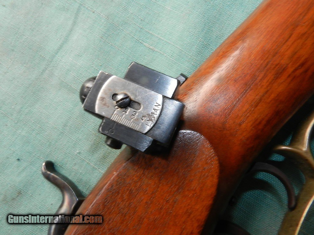 Description: SOLD A clean Thompson Center percussion rifle with a serial #217961, .50 cal., 28” octagon barrel with a bright near excellent bore showing a small area of light oxidation in the rifling at the muzzle. The barrel retains about 99% original blue with a few fine handling marks around the front sight and a couple tiny spots of light oxidation staining on the muzzle. The lock retains all its original case-hardened colors and the brass mountings have aged to a lightly-tarnished warm mustard patina. The American walnut halfstock with left side cheekpiece rates about fine with a handful of scattered light handling marks from honest use. The rear sight has been removed leaving two vacant holes, the front sight is an added globe with amber-colored insert and mounted to the barrel tang is a Lyman 57SML sight with aperture. A hardwood ramrod with tarnished brass tip is included, the double set triggers function well mechanically and the action remains crisp When buying a gun always have it examined by a competent gunsmith before shooting. To buy a gun from me you must get a direct email for me, with details, and shipping cost. We don’t have a web site .I prefer money orders or a check. Item ships when funds come in. I try to keep guns affordable, which means I make less money than most dealers. You won’t get altitude sickness, or nose bleed, with my prices! I consistently have the best selection of older guns If you attempt to buy, you must still contact us for details . Best to email to buy. Sometimes a local person can stop buy and purchase before the gun is removed. Sometimes not home to get calls. Some guns are required shipment to a gun dealer near you for a transfer to you when it arrives. Otherwise many older or black powder guns ship to your door. With the widest selection of older guns at great prices, We don’t have a store, and sell on the internet only. I’m easy to get along with. Thank You SOLD |