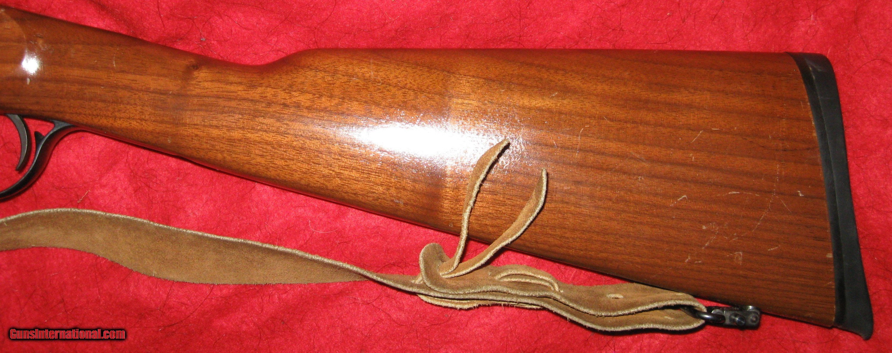 Description: THIS TC WHITE MOUNTAIN CARBINE IS SERIAL #3789. IT IS A 50 CALIBER PERCUSSION CARBINE. THE WHITE MOUNTAIN CARBINE IS A HANDY 39" OVERALL WITH A 22" HALF OCTAGONAL HALF ROUND BARREL. IT IS IN VERY GOOD CONDITION OVERALL WITH SOME SCRATCHES FROM HUNTING AND A SMALL PATCH OF LIGHT PITTING NEAR THE MUZZLE IN THE BORE (SEE PICTURES). IT IS A GREAT SHOOTER AND VERY EASY TO CARRY THROUGH THE WOODS. THE NIPPLE HAS BEEN UPGRADED TO A MUSKET CAP FOR GOOD IGNITION. COMES WITH LEATHER QUICK DETACH SLING. SHIPPING IS ACTUAL COST USPS PRIORITY DIRECT FIGURED AFTER PURCHASE ( NO HANDLING OR PACKING FEES) OR $50 VIA MY FFL UPS DIRECT TO YOU NO PAPERWORK. SOLD Rifle Caliber: .50 Manufacturer: THOMPSON CENTER Model: WHITE MOUNTAIN CARBINE Serial Number: 3778 Barrel Length: 22 Condition: VERY GOOD Metal Condition: VERY GOOD Wood Condition: VERY GOOD -SCATTERED SCRATCHES Bore Condition: VERY GOOD - SMALL PATCH OF LIGHT PITTING NEAR MUZZLE Barrel Type: HALF OCTAGONAL HALF ROUND Action: PERCUSSION (MUSKET CAP NIPPLE) Triggers: SINGLE Stock: ORIGINAL Butt Pad: ORIGINAL RUBBER Finish: BLUE Sights: OPEN ADJUSTABLE Engraving: LOAK PLATE ENGRAVED Extras: LEATHER QUICK DETACH SLING |