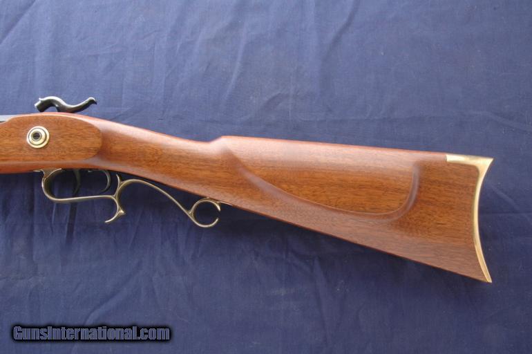 Description: THOMPSON CENTER Hawken .50 cal. percussion rifle with a serial number 444101. Features include all brass steel furniture, American walnut stock, 29” heavy octagonal barrel, oak ramrod, adjustable rear sight and dovetailed front sight. Strong color case hardening on the lock plate. A very fine looking percussion rifle with some handling marks on the stock and in a great caliber. This rifle also comes with a starter starter kit. SOLD |