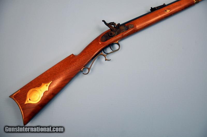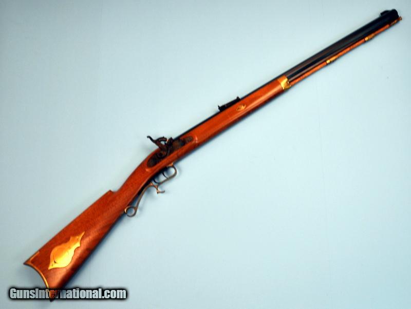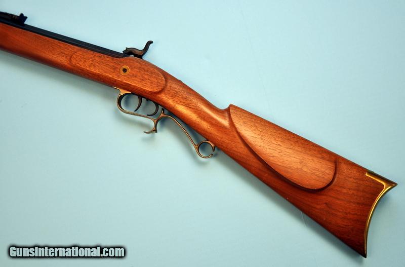 Description: 45 caliber. Serial number 12094. 29" octagon barrel with adjustable rear & blade front sights. Case colored lock. Double set triggers. Key fastened walnut stock with brass fitting. Hardwood ramrod. 98% original finish, stock shows a few small marks. Brass trigger guard shows spots of tarnish. Very good bore & mechanics. Shipping $25.00 SOLD |