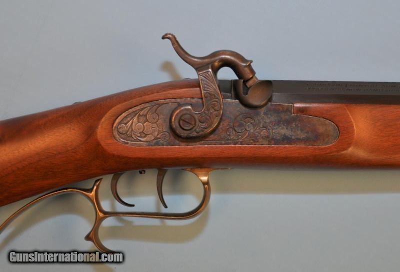 Description: .54 cal. SN 404378. 29" octagon barrel. Adjustable rear sight. Double set triggers. Case colored lock. Walnut stock with brass patchbox & furniture. Hardwood ramrod. Over 98% original with a few small marks in stock. Very good bright bore, Ship $25. SOLD |