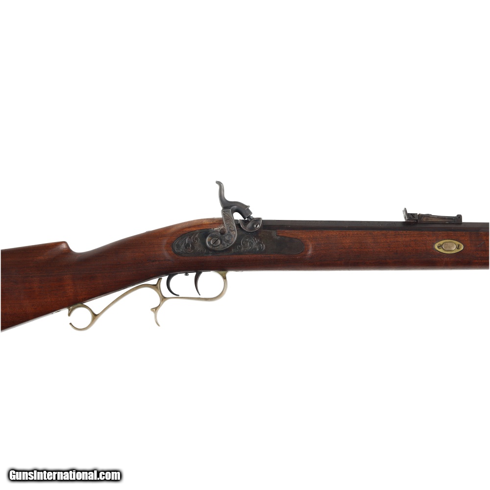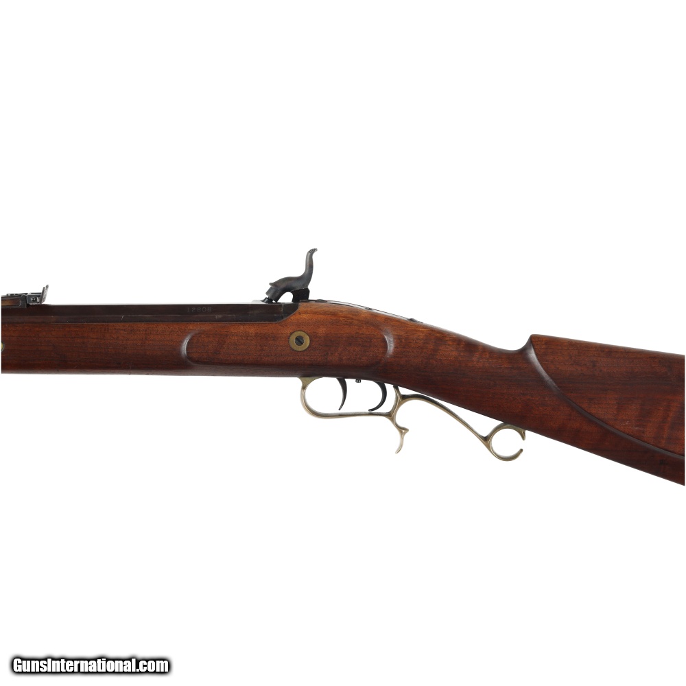 Description: This Thompson Center percussion rifle appears to be a Hawken model, however it is not marked as such. The barrel is somewhat loose in the stock but otherwise appears to have good mechanical function. The set trigger has good function with a very light pull once set. The barrel although loose has strong rifling and no major corrosion with only moderate wear. The stock has a crack in the but, but otherwise appears sound in the wrist and forend. In all, this rifle has survived many hunts here in New Jersey and will survive many more with a bit of love. Manufactured in: USA Hand: Right Hand Action Finish: Case Colored Action Description: Single Shot Metal Finish: Original Barrel Length: 28 Inches Barrel Condition: Good Stock Finish: Original Stock Condition: Cracked Type of Butt: Crescent Brass Plate Pad Thickness: NONE Grip: Straight Grip Forend: Not Checkered Extra Barrels: No. SOLD Manufacturer: Thompson Center Model: Percussion Cap Rifle Caliber Info: .45 Condition: Preowned Metal Condition: Good Action: Percussion Cap Triggers: Set Trigger Fore End: Not Checkered Butt Pad: NONE LOP: 14 5/8 Finish: Original Weight: 9 lbs Extras: No. Case: NONE |