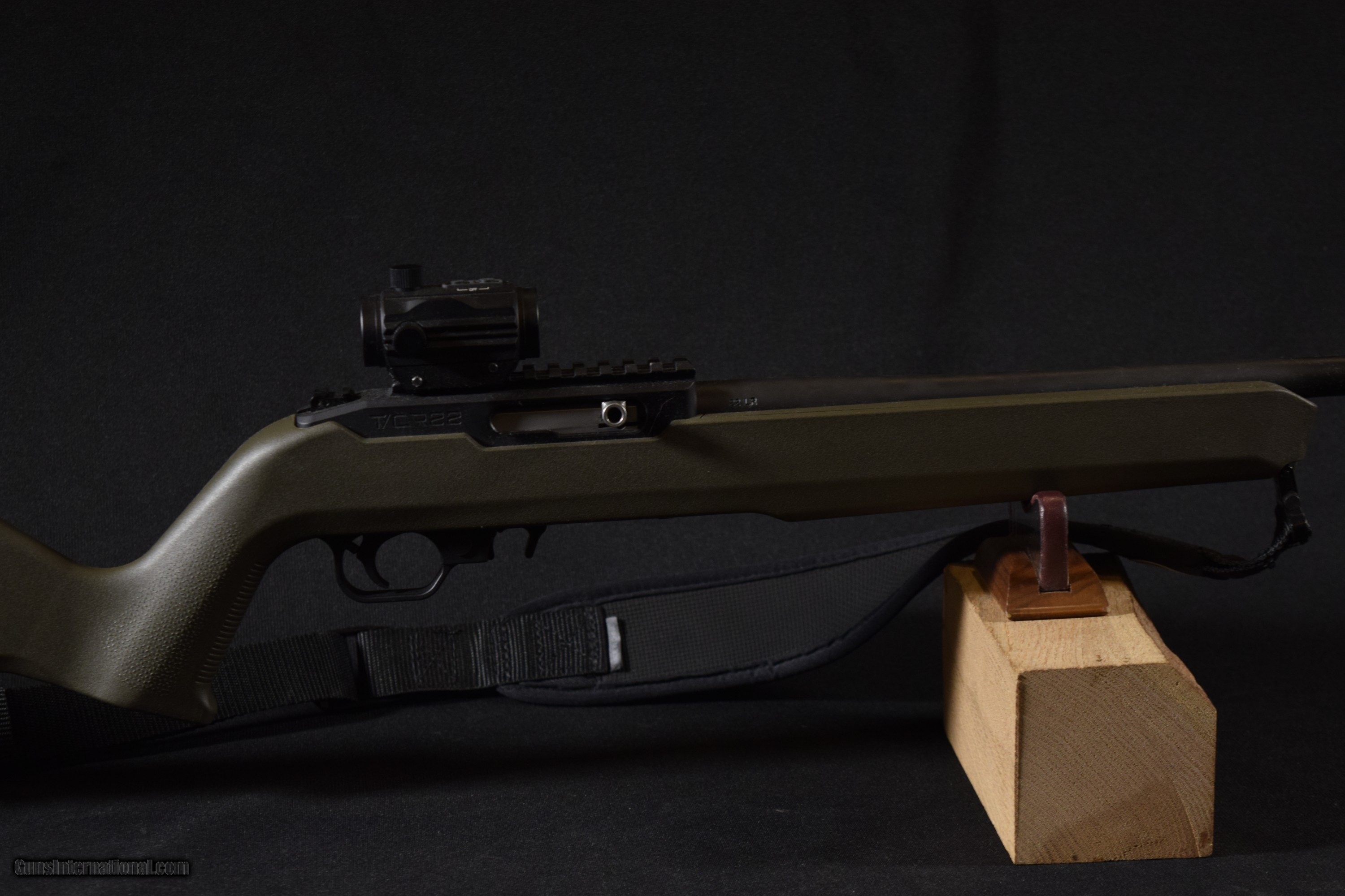 Description: The Thompson Center TCR-22 is expertly-crafted for hunters, plinkers, and first-time shooters alike. Building on a heritage of affordable firearms from a trusted American brand. The Thompson/Center T/CR22 rifle delivers out-of-the-box performance through a feature set that appeals to hunters and avid firearms owners. The new T/CR22 rifle includes a green fiber optic front sight and adjustable rear peep sight for quick target acquisition, while the built-in picatinny-style rail allows for the mounting of an optic for precision shooting at longer ranges. This item does not come with a case. Overall condition is great with some minor wear from use. Pre-Owned - Thompson Center Arms T/CR22 .22LR Rifle