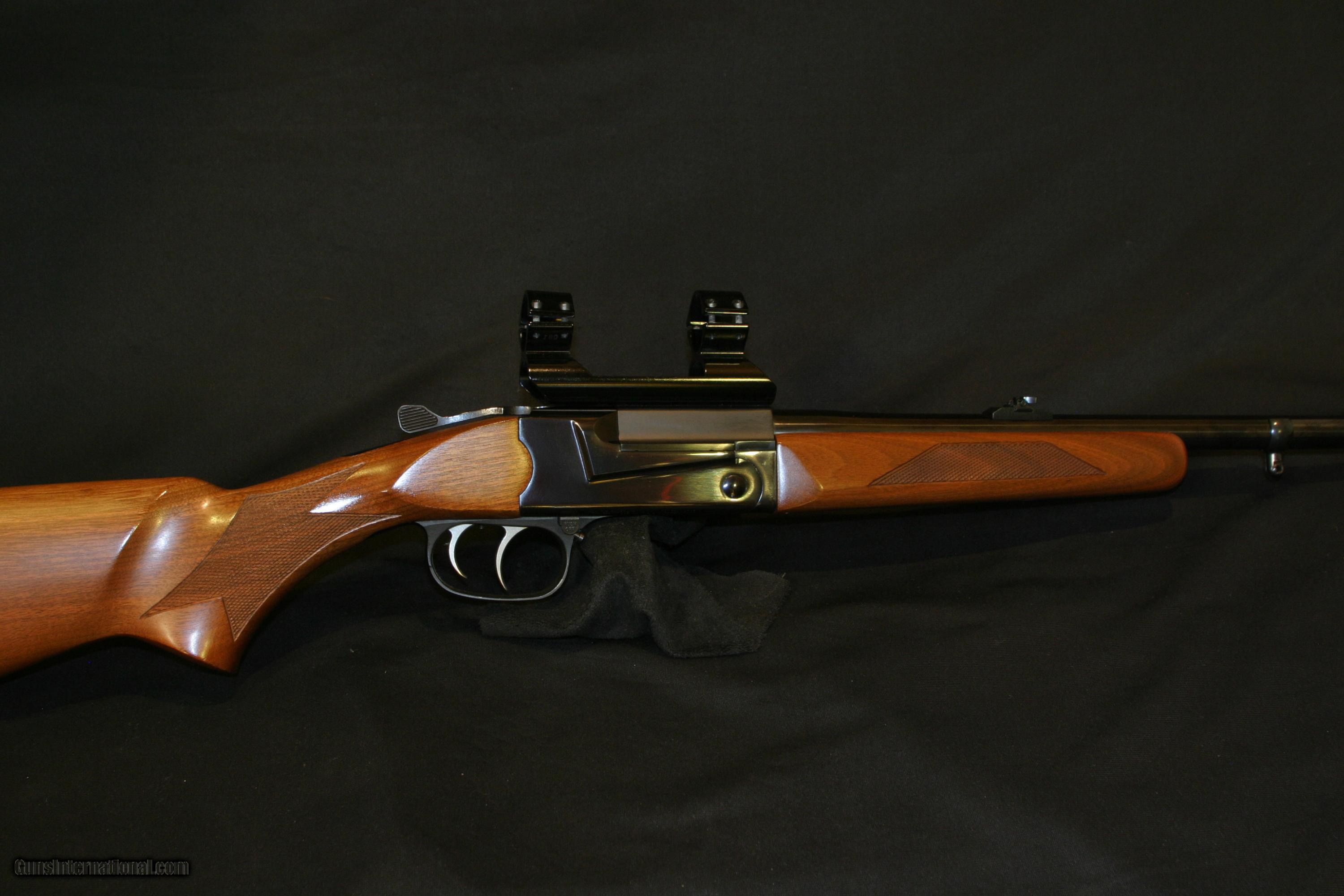 Description: This is the single shot,top lever deluxe "Aristocrat" model with checkered stocks.This one come with three interchangeable barrels chambered in .22 HORNET(rare), .243 Winchester and .308 Winchester. Made from 1983 till 1986 SOLD |