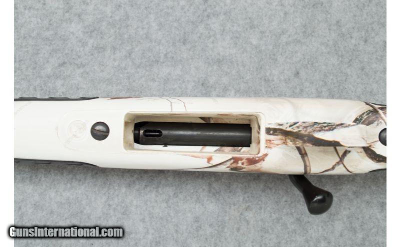 Description: Used SOLD Caliber Info: .22-250 Rem. Metal Condition: Excellent; some finish erosion on bolt end & right side of receiver above bolt Bore Condition: Clean and sharp - fluted barrel Barrels: 22 Triggers: Grooved, blued steel Stock: Realtree Winter - Synthetic with Forend & Pistol Grip inserts Stock Dimensions: LOP - 13 3/8 Butt Pad: Black rubber pad Weight: 7 lbs. Sights: None; Scope Mounts Extras: With 1 magazine Item Location: Sun Prairie, WI |