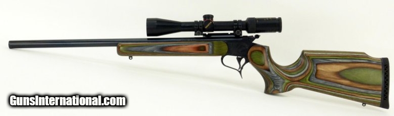 Thompson/Center Arms Contender 7-30 Waters caliber rifle. Single shot rifle with 23” heavy barrel in popular 7-30 Waters caliber. Has a camo laminated stock and Simmons 4x12 scope.