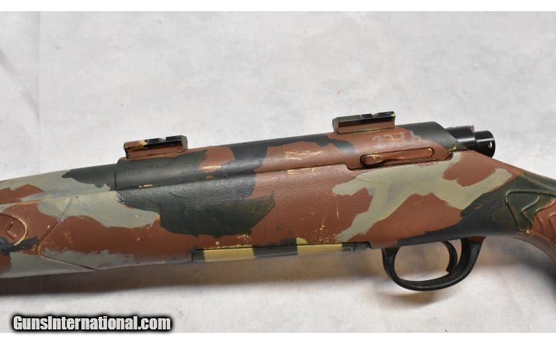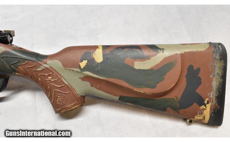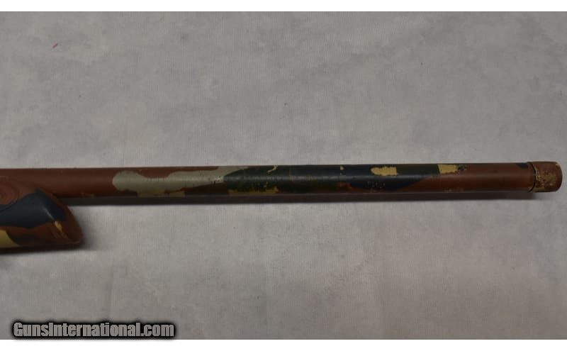 Description: Thompson Center Compass. Hand Painted Camo .270 Winchester SOLD Chambers: N/A Metal Condition: N/A Wood Condition: N/A Bore Condition: Excellent Barrels: N/A Triggers: N/A Stock Dimensions: N/A Fore End: N/A Butt Pad: N/A Weight: 4lbs Sights: N/A Chokes: N/A Item Location: Colorado Springs, CO |